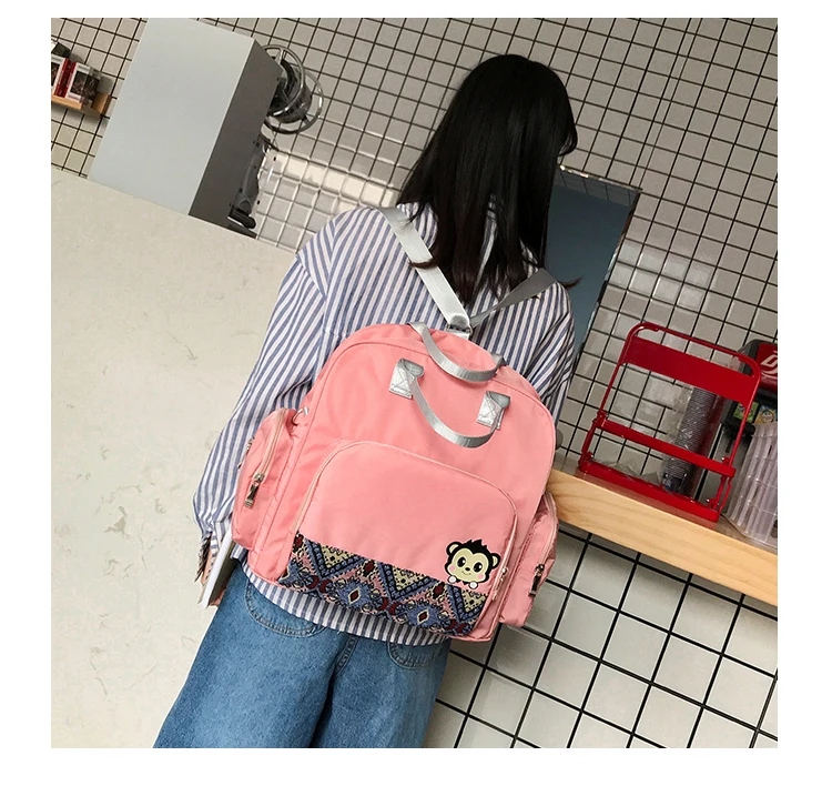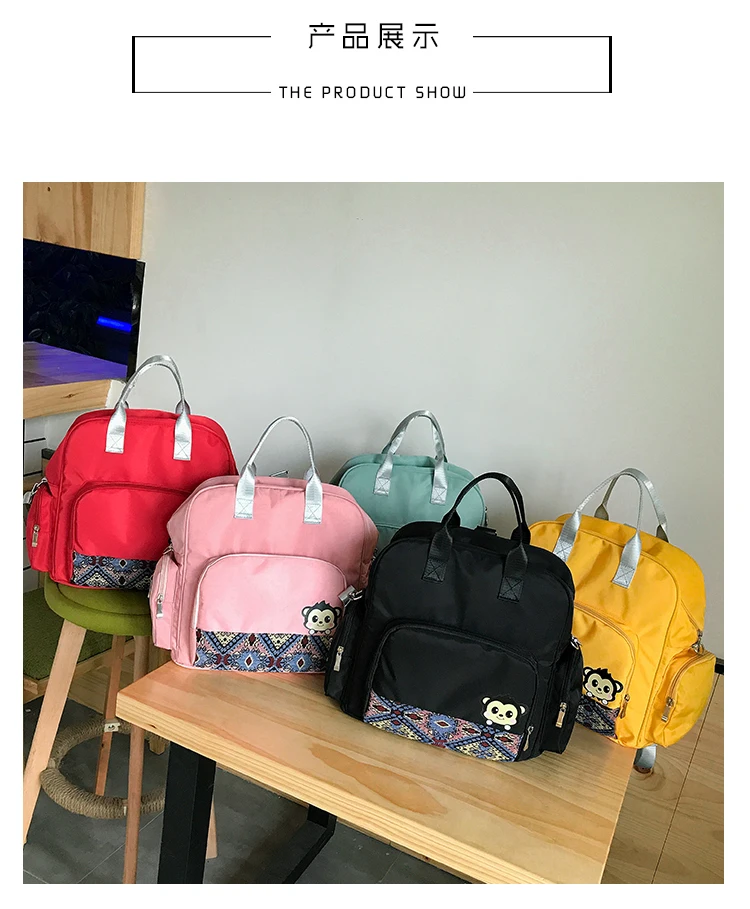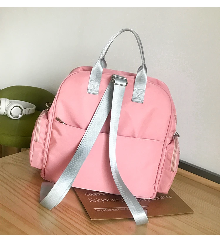 Nylon material, super waterproof function. Multi-bag design, scientific partition, with two side pockets, a front zip pocket, a back safety pocket, and a main pocket. There are also two aluminum foil insulated baby bottle bags for your baby to drink hot milk when they go out! A backpack makes traveling with your baby easier.