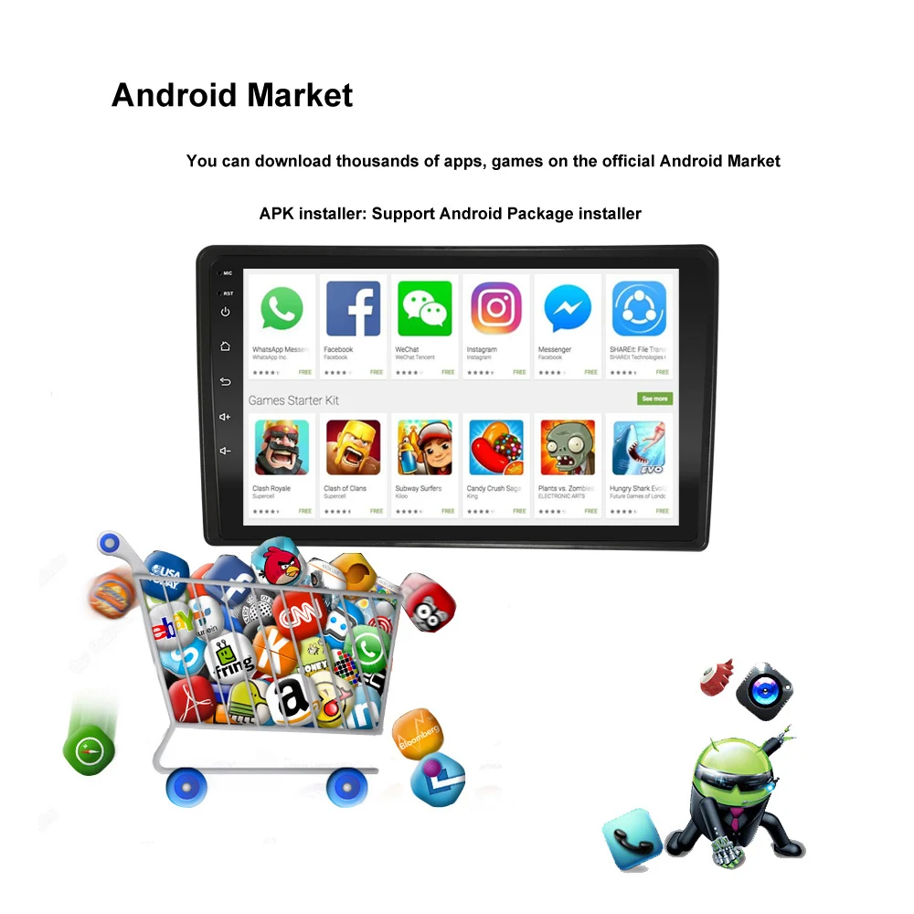 1 Автомобильный Android GPS медиаплеер 2 зарядных порта usb кабель 1 Антенна gps 2 RCA кабели 1 адаптер для кабеля Поддержка USB DVR (опционально) DAB + Поддержка (опционально) Поддержка TMPS (опционально) Поддержка OBD (опционально)