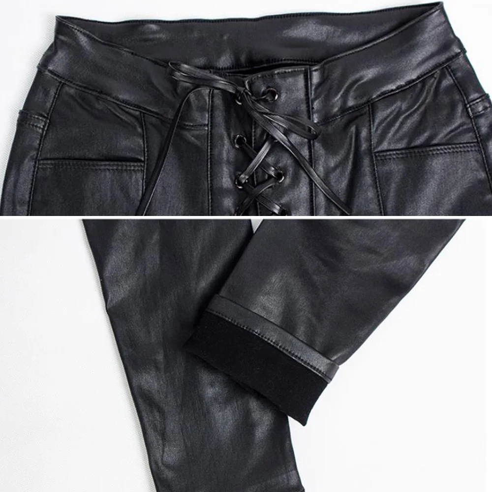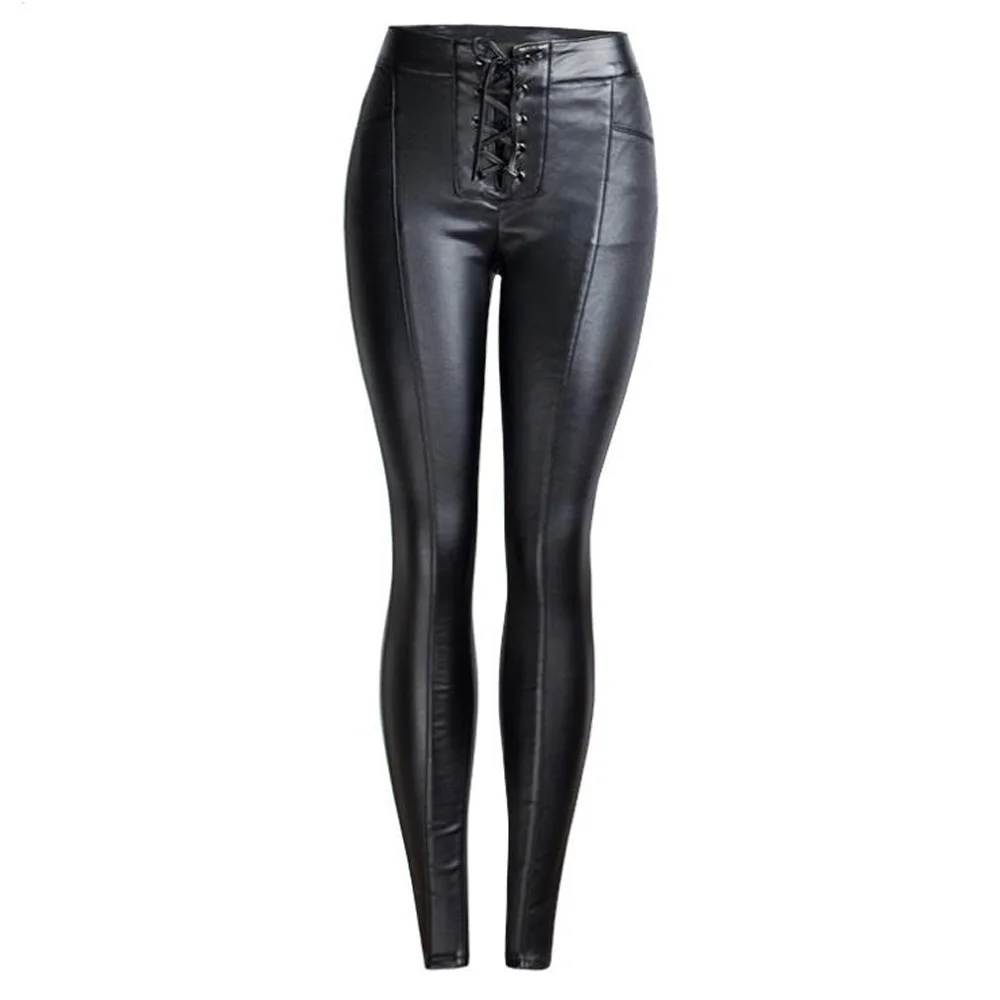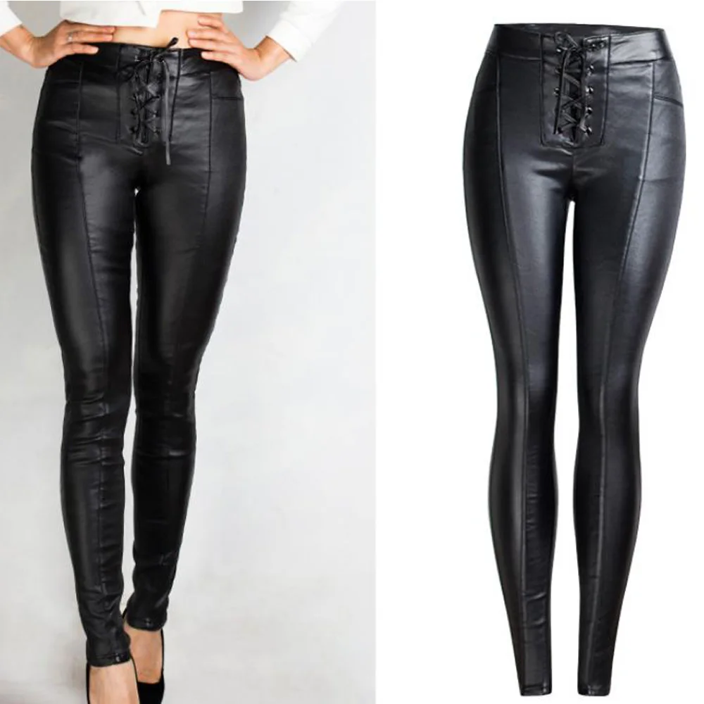 Название: 2021 осенне-зимние черные джинсовые кожаные брюки с покрытием женские модные с высокой талией на шнуровке корсет готический панк стимпанк флисовые брюки