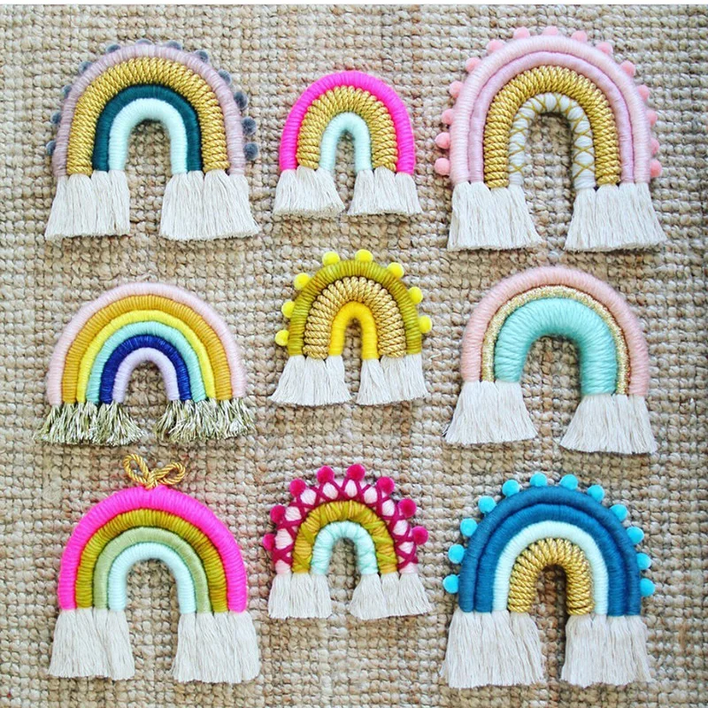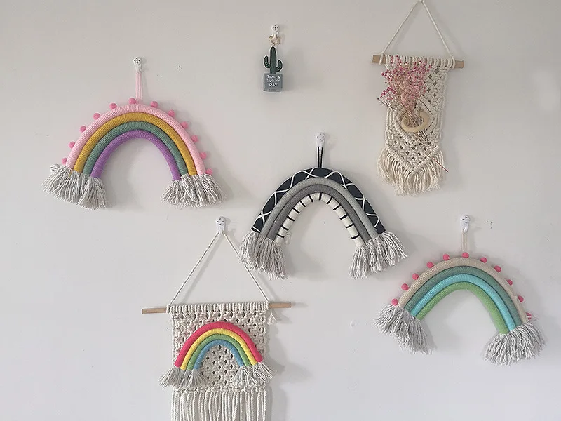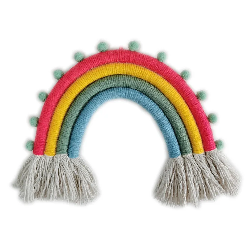 Декор для детской комнаты макраме ручной работы плетеный Радужный настенный вязаный настенный гобелен с кисточкой художественное украшение для детской комнаты в подарок