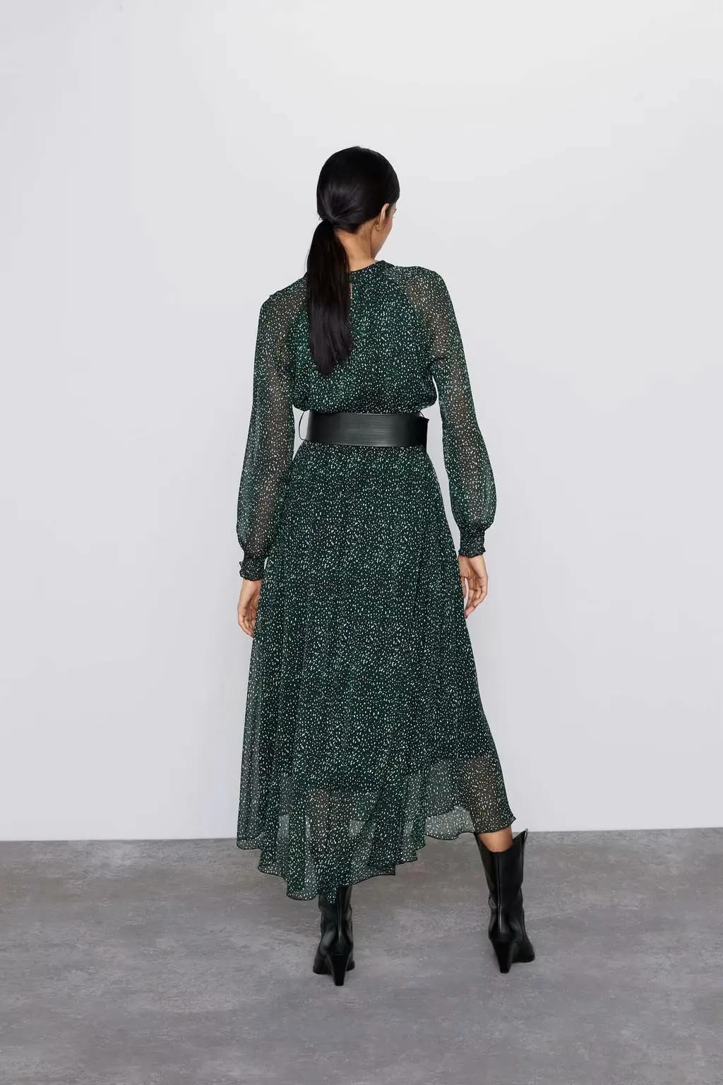 LUZUZI дамское элегантное вечернее платье с поясом весеннее летнее платье макси с длинным рукавом женское ТРАПЕЦИЕВИДНОЕ ПЛАТЬЕ с круглым вырезом