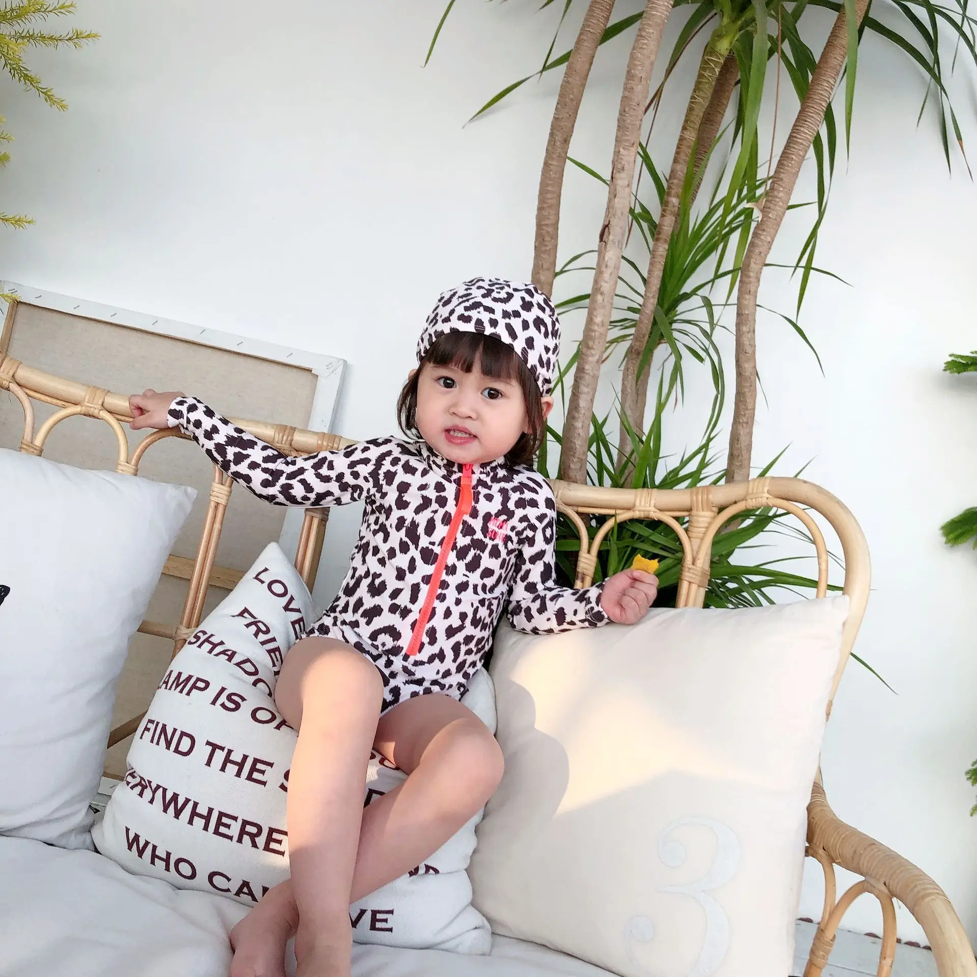 2020 Новое поступление; Летнее детская, длинный рукав, рисунок леопарда, Одна деталь для купания, купальный костюм для девочек; Солнцезащитное пальто пляжный купальник S01401K