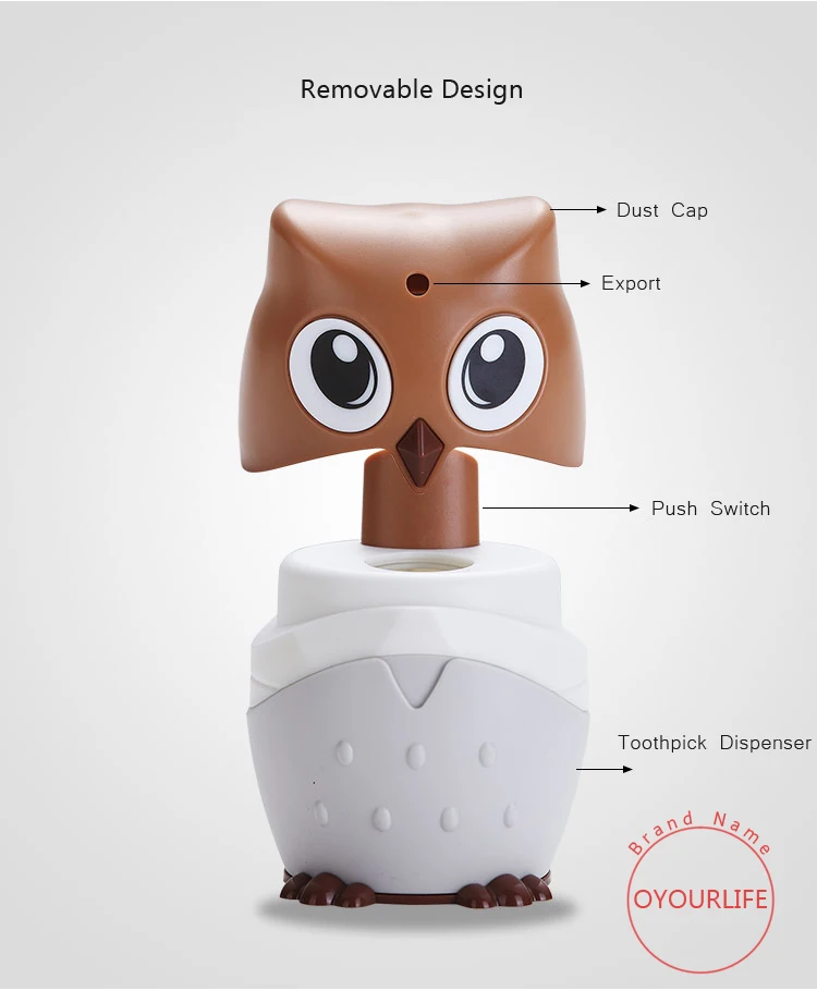 Особенности: 100% абсолютно новый и высокого качества. Креативная форма совы, автоматическая подставка для зубочисток. Автоматический пресс, простой в использовании. Технические характеристики изделия: Размеры: 10*7,5 см Материал: PP Цвет: коричневый, оранжевый, серый Вес: 110 г -Примечание: 1. Размер для ручного измерения, может быть погрешность от 0 до 1 см, является нормальной. 2. В связи с разной конфигурацией разных мониторов изображение не отображает фактический цвет товара. Если у вас есть какие-либо другие пожелания, пожалуйста, оставьте нам сообщение, чтобы мы постарались помочь вам.