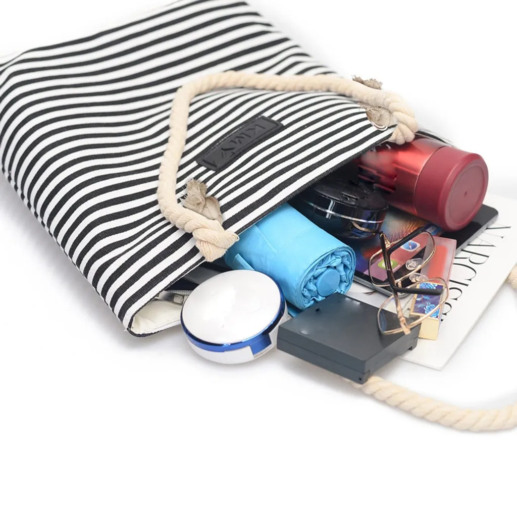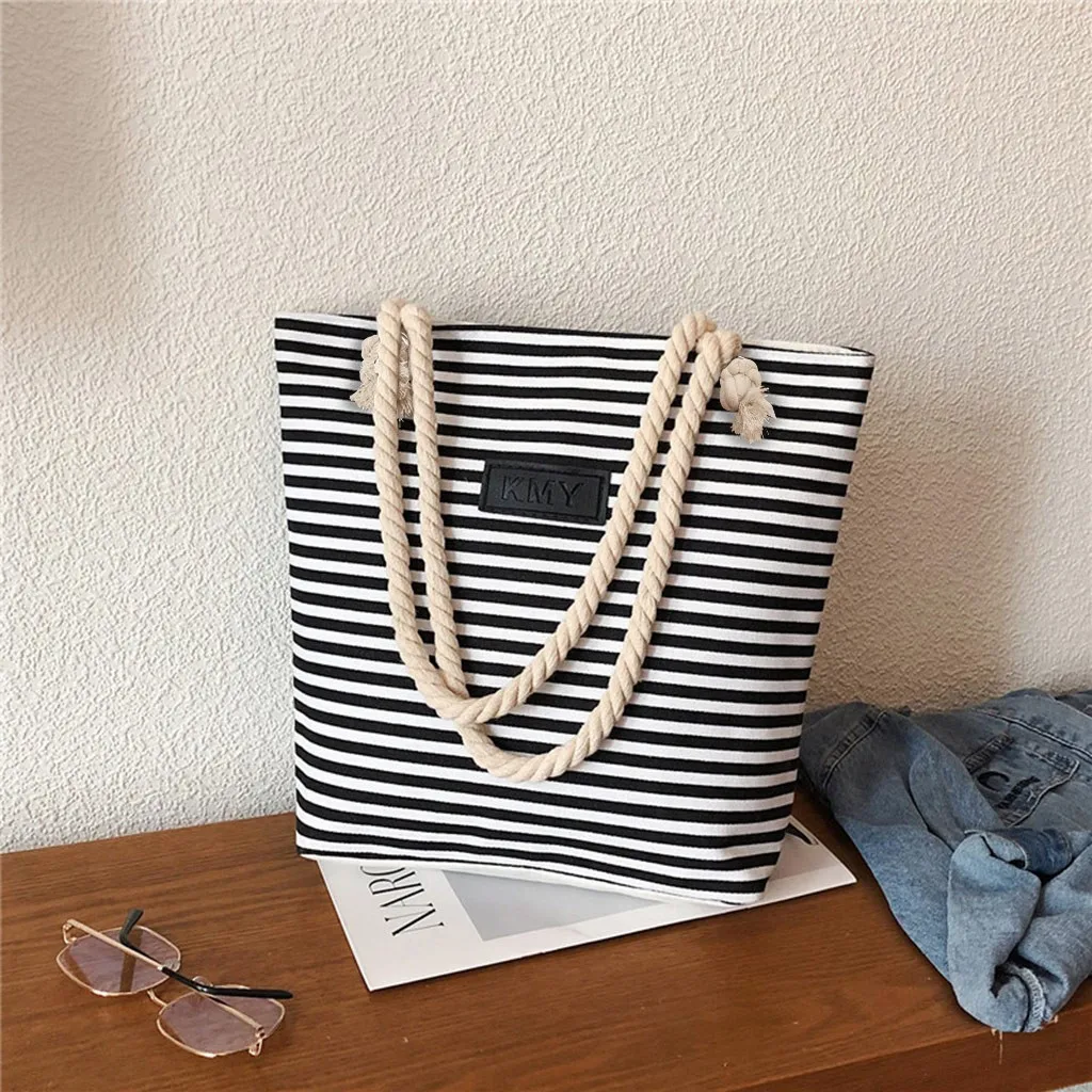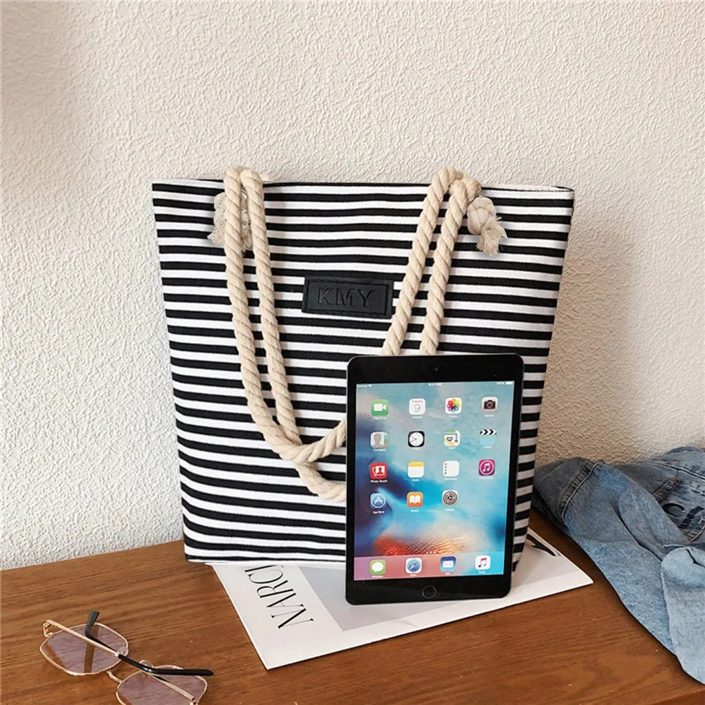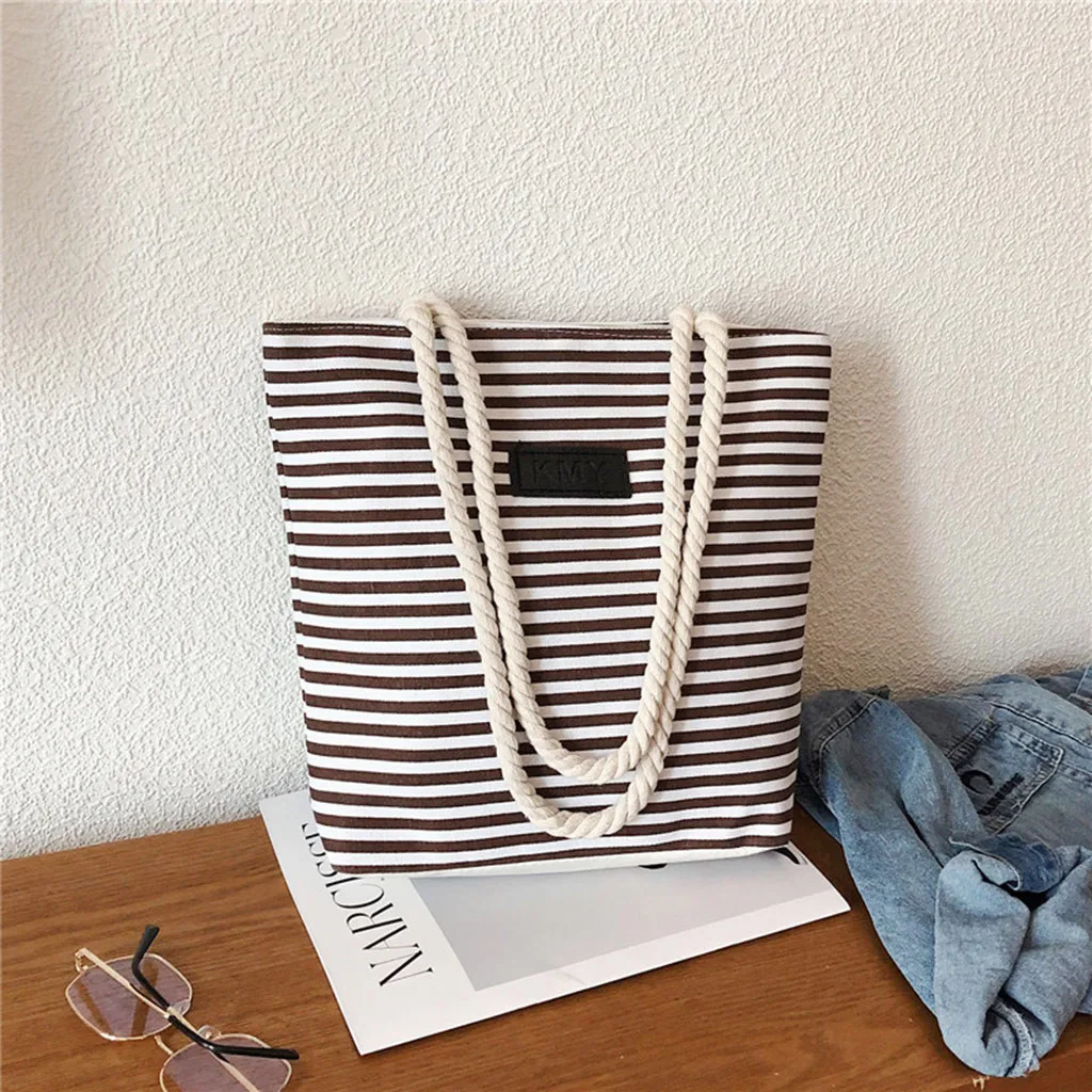 Женская Холщовая Сумка в полоску, пляжная сумка на плечо, Женская Повседневная Сумка-тоут, большая грубая сумка-мессенджер, дамские сумки