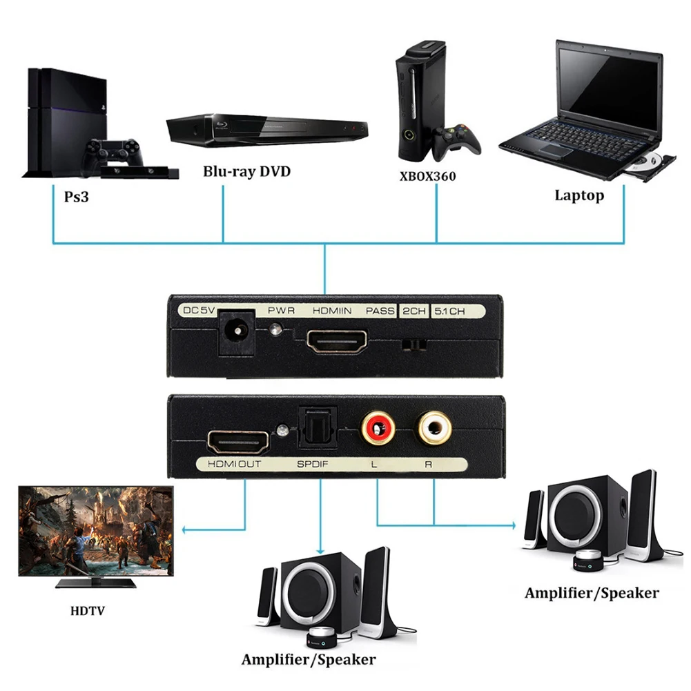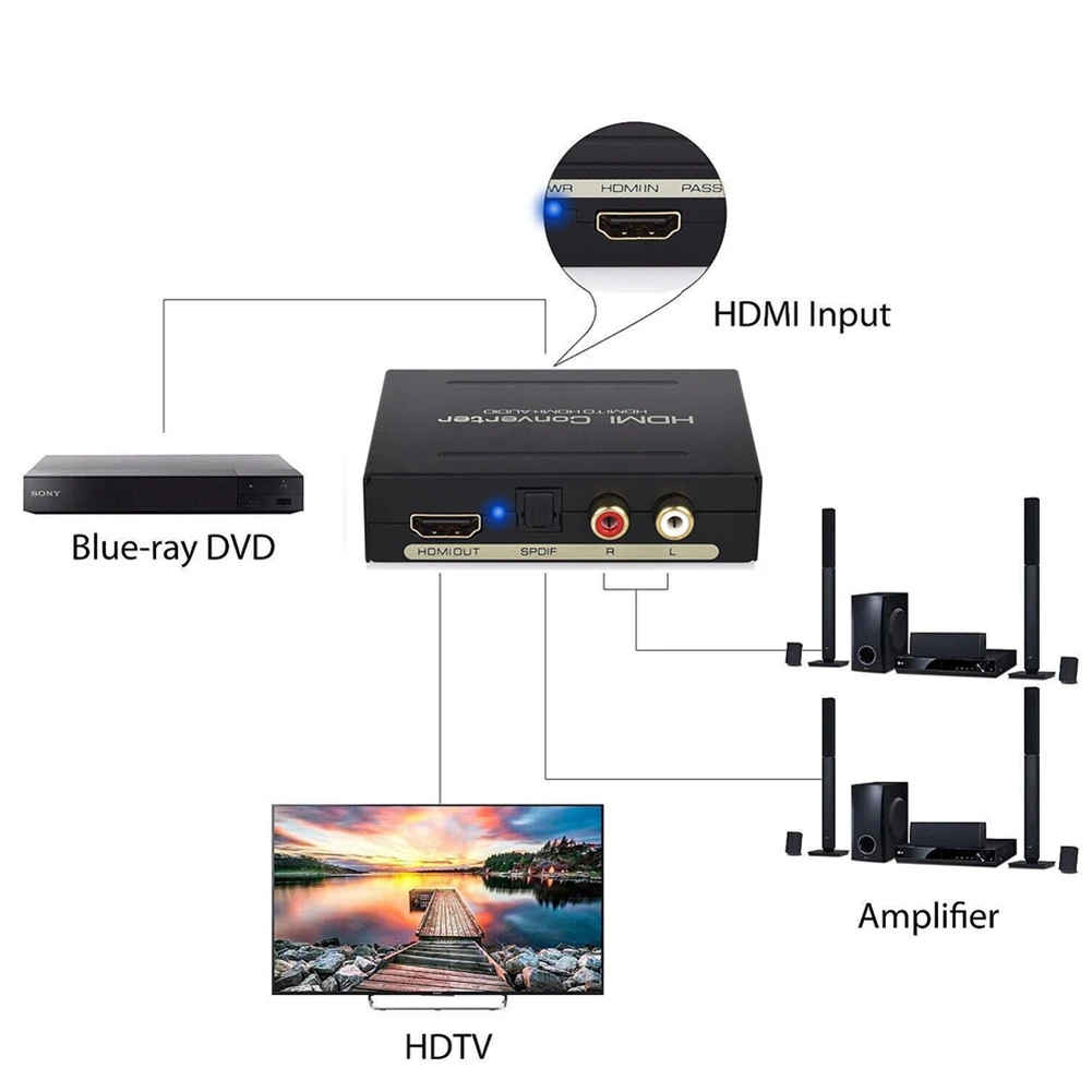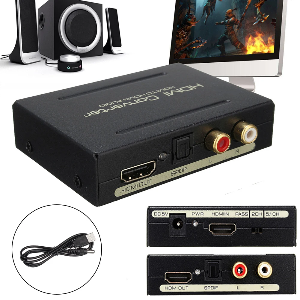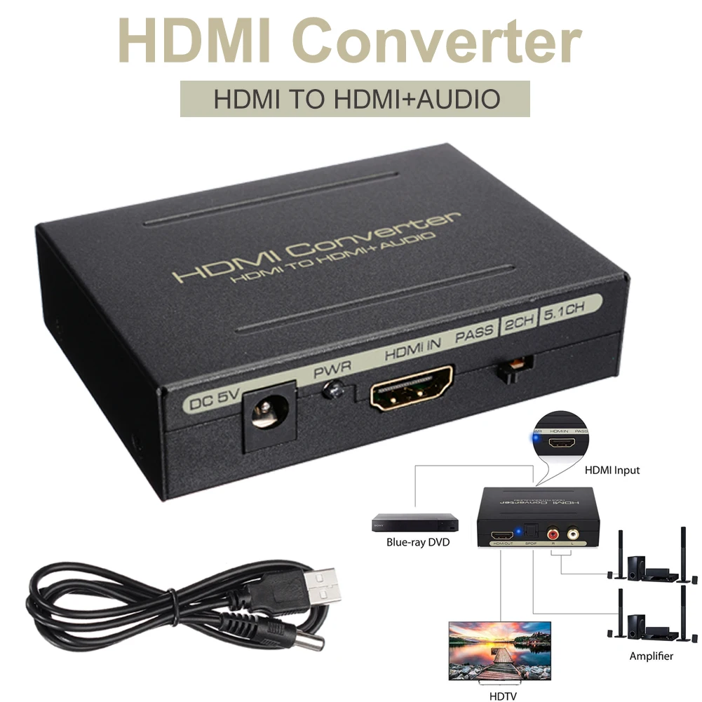 *1. Convert HDMI input to one HDMI output, one optical audio output and one R/L analog audio output.