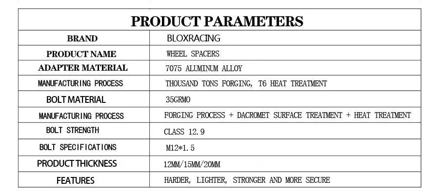 ♦Расширьте свою позицию-для лучшей обработки и внешнего вида ♦Изготовлен из высокопрочного 7075-t6 алюминиевого сплава ♦Точная установка с использованием минимального допуска на производство, что приводит к исключительному балансу колеса ♦Все приложения протестированы на прочность и усталость ♦Высококачественная защита от коррозии через специальный процесс нанесения покрытия (испытание солевым распылением в соответствии с DIN 50021) ♦Весовое преимущество по сравнению с колесными прокладками из стали