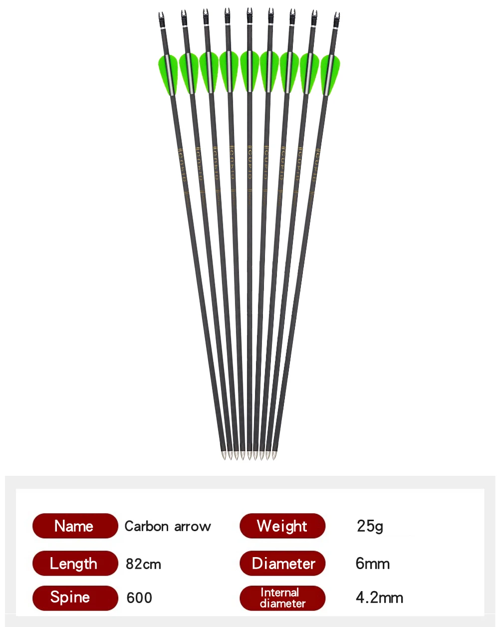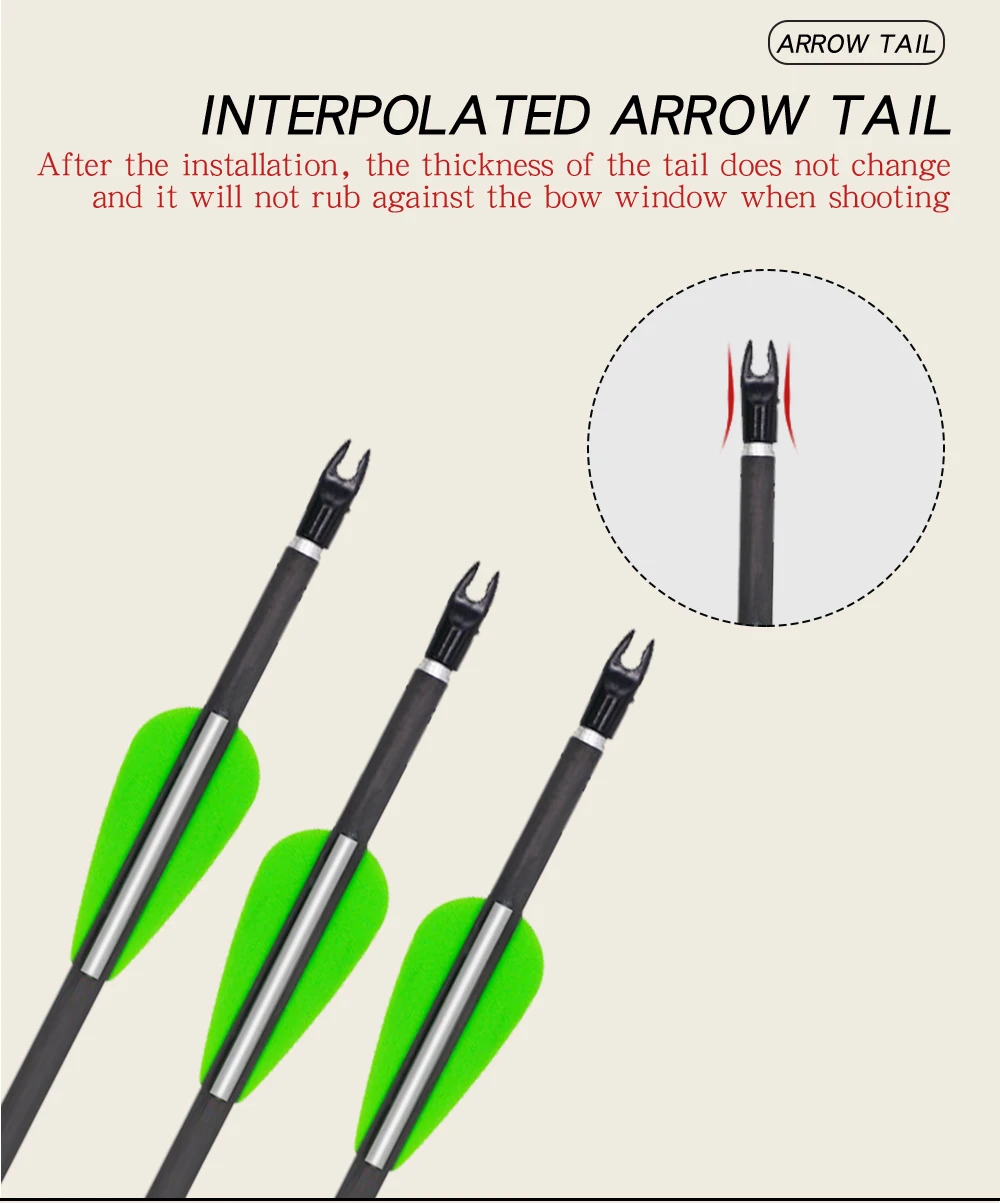 Параметры: Длина вала: 82 см/32 дюйма Позвоночника: 800 Диаметр: 6 мм Материал вала: смешанный углерод Перо Материал: Резина Цвет пера: 2 green1white Тип точки: традиционное пальто со стрелками Вес: около 26 г Стальные наконечники стрелы подходят как для целевой практики, так и для охоты. Подходит как для комбинированного банта, так и для рекурсии. Пользователь Обратите внимание: Не прижимайте к бетонной стене или любому твердому веществу. Это может повредить стрелки.