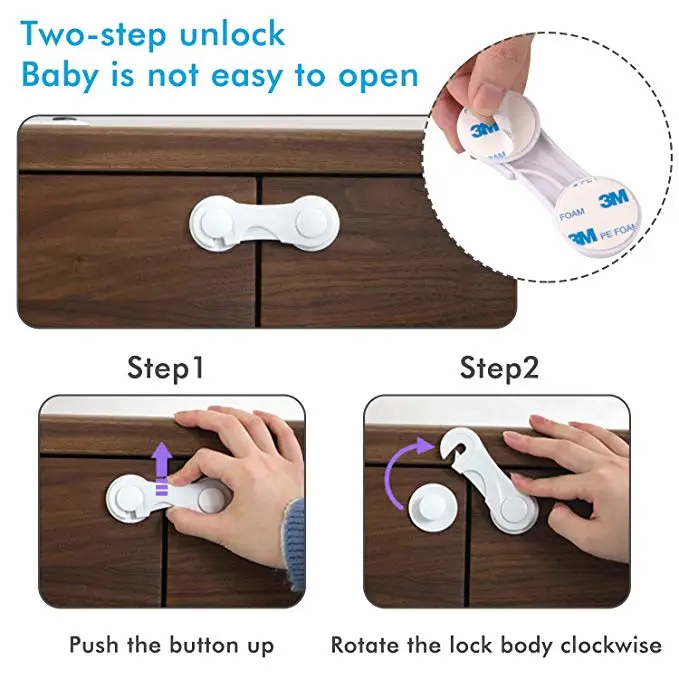 Безопасность во-первых: защита ребенка ваш дом становится легче с Slingifts детей безопасности шкафа замки. Каждый замок хорошо приклеится к шкафам и дверям легко и надежно. Надежный клейкий замок прочно держится на дереве, шпоне, пластике, стекле и металле. Широкое применение: не только для шкафа или выдвижного ящика-Используйте защелки для защиты детей, чтобы закрепить окна, шкафы, холодильники или посудомоечную машину на кухне, сиденья для туалета и многое другое. Они делают отличный подарок для новых мам, защищают их дома! Простота установки: установка замка безопасности детей легко и быстро без сверления или винтов не требуется. Просто снимите отступлю раскрыть 3 м самоклеющаяся и нажмите кнопку шкафа замок на передней или боковой шкаф или устройства. Сильный клей: клейкую ленту 3м стикеры Будет наклеить в вашу мебель и прослужит в течение длительного времени. Они не снимаются легко и могут быть удалены, не повреждая мебель.