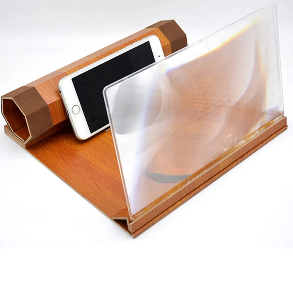 12 дюймов 3D HD видео усилитель видео Ретро деревянный экран Лупа сотовый телефон со складным держателем подставка для iPhone Смартфон