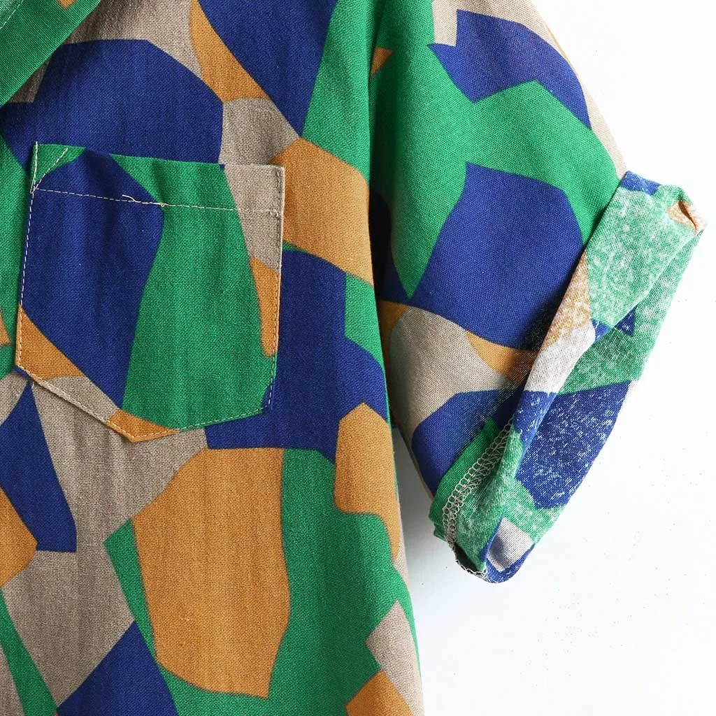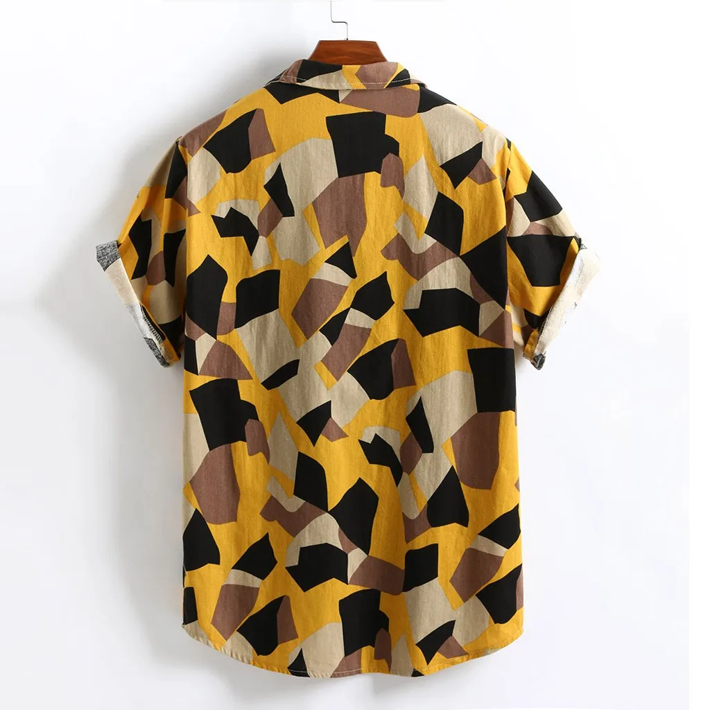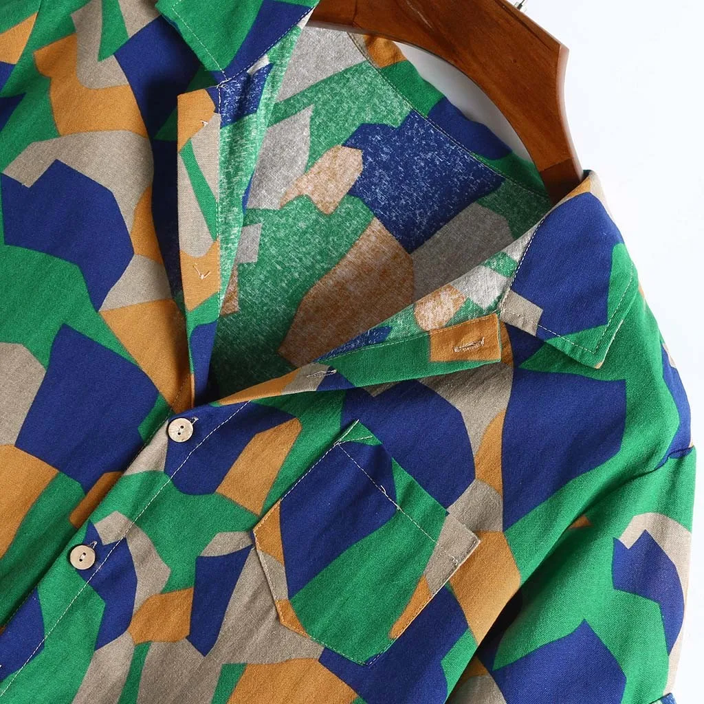 Мужская свободная футболка с короткими рукавами и пуговицами из Гавайского хлопка и льна