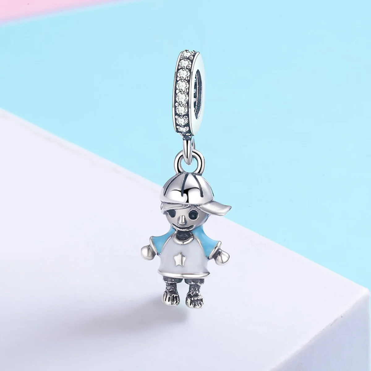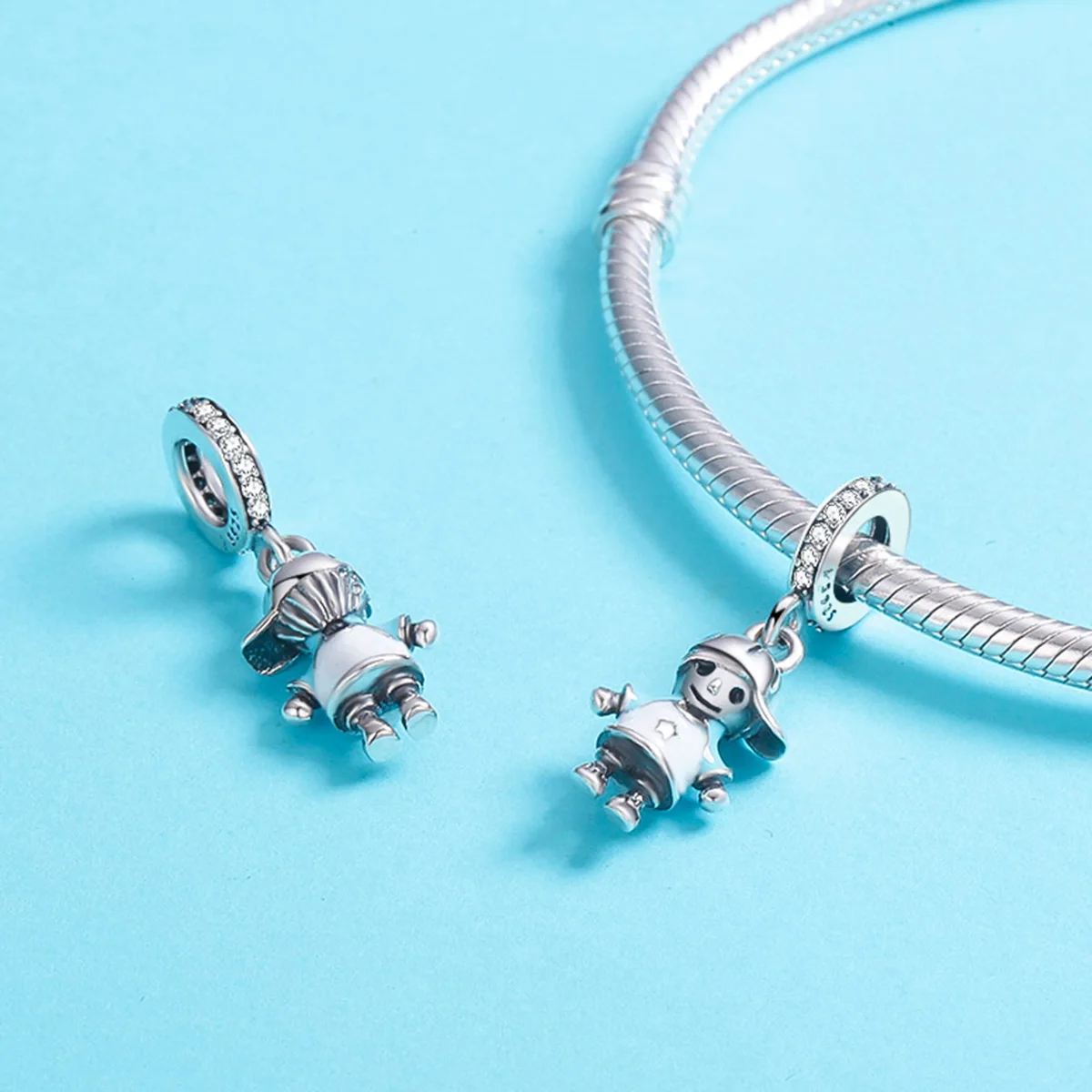 925 Sterling Silver Charms Fit original Pandora Bracelets Necklaces Secret Planet Moon Star Pendant Blue Ename Jewelry