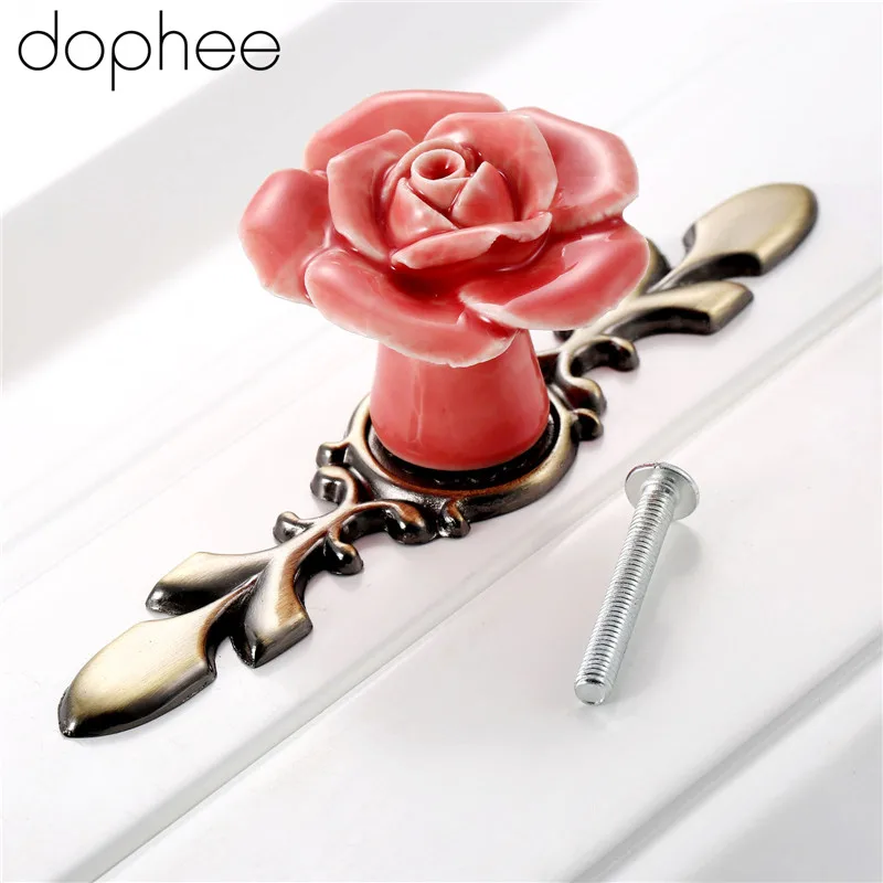 Dophee Роза керамическая ручка дверные ручки шкаф ящик, ручки шкафа и ручки для мебели винтажные кухонные ручки сплав