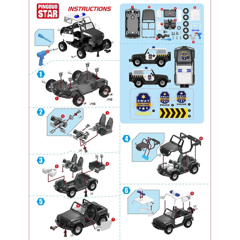 1 Набор разобранных комплектов полицейской машины
