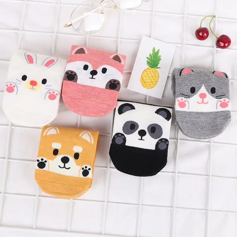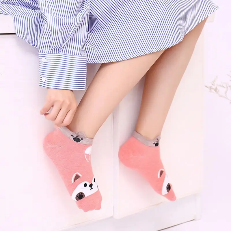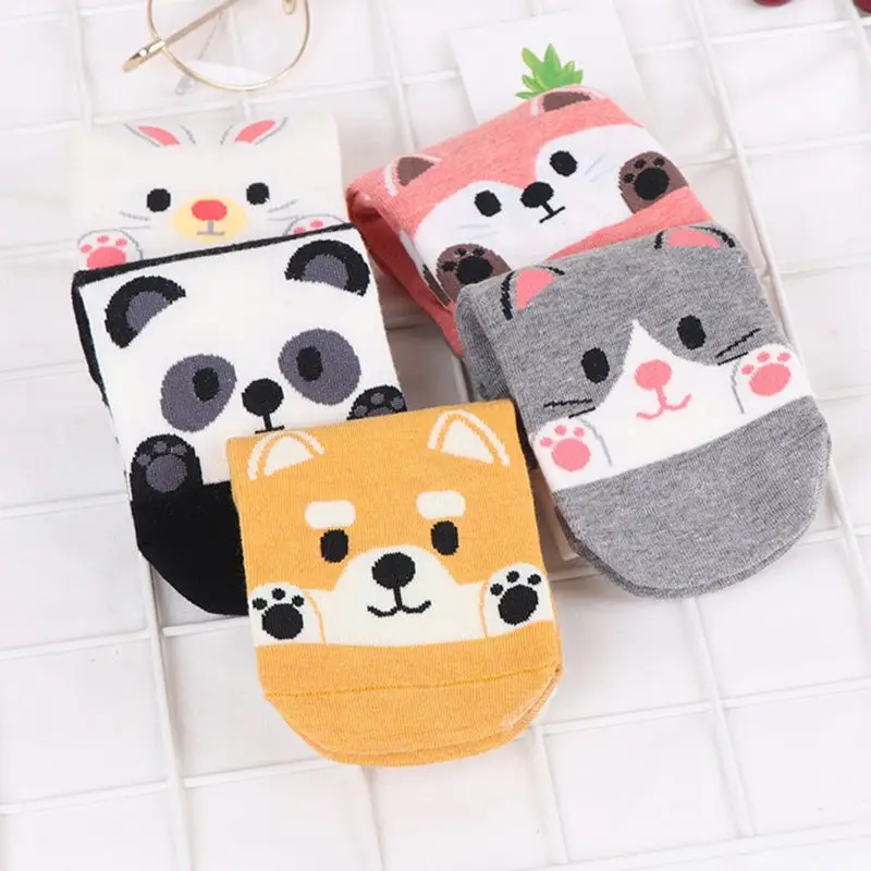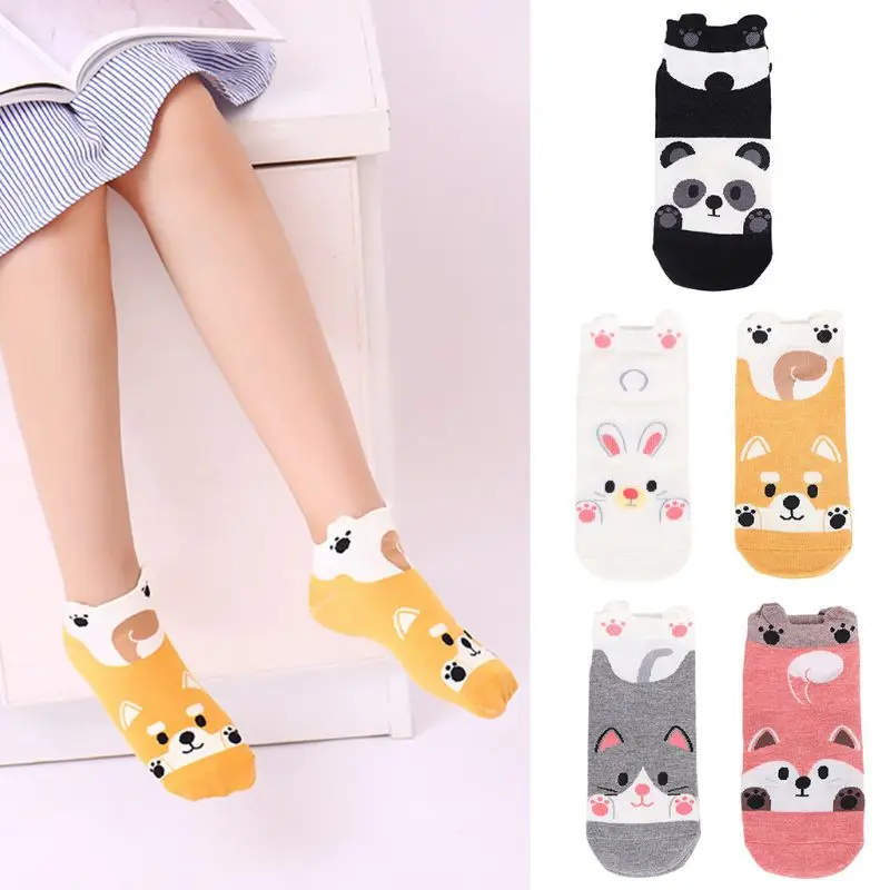 Ребристые трикотажные эластичные манжеты, короткие носки-башмачки, милый мультфильм кролик/собака/панда/кошка, дизайн 3D лапы животных.