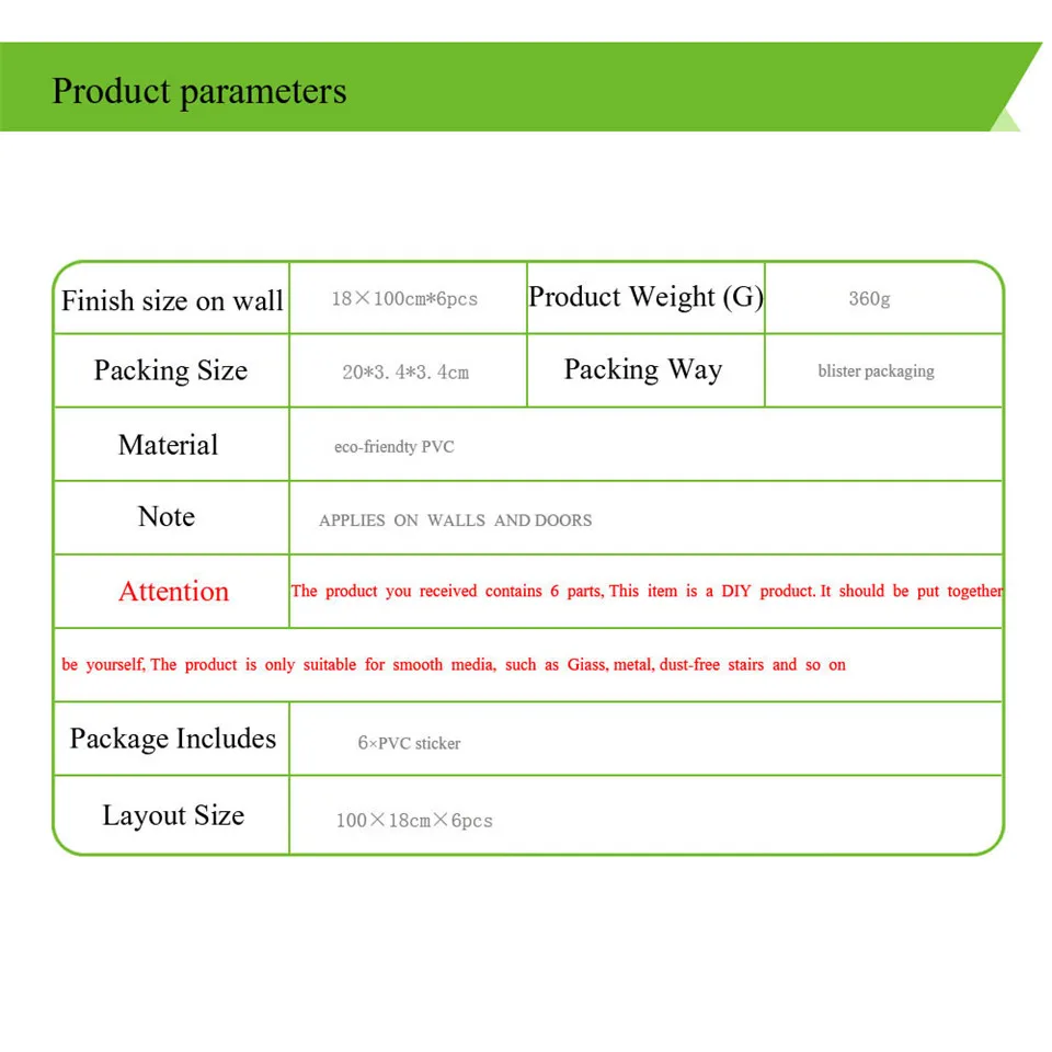 Материал: экологически безопасный ПВХ Размер наклейки для лестницы: 18x100 см/шт Посылка: 6 шт./13 шт. Наклейка на дверь: 77*200 см (38,5*200 см), 95*215cm47, 5*215 см)