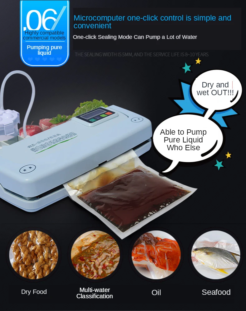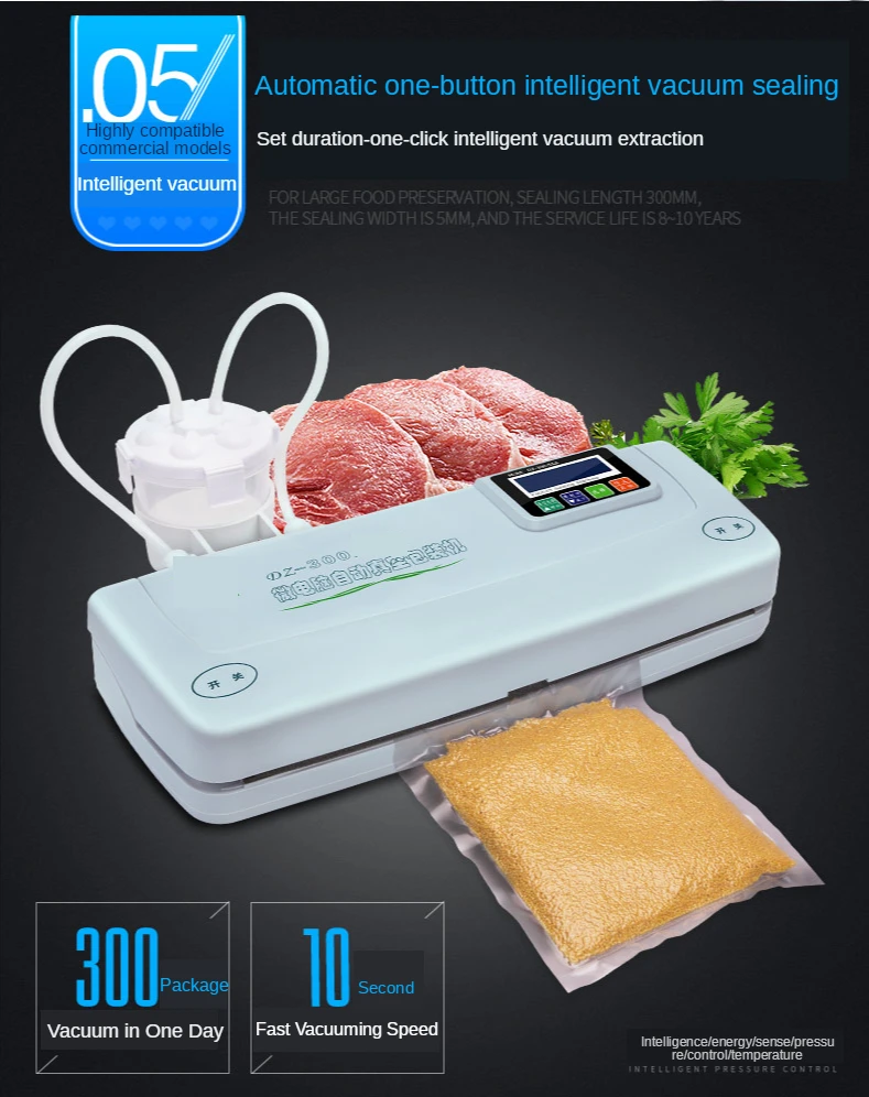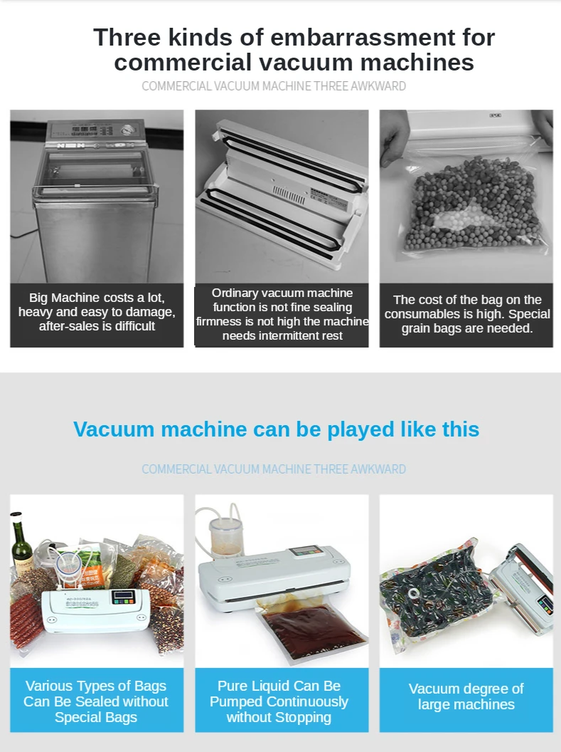 Коммерческая вакуумная упаковочная машина для упаковки пластиковых пакетов, автоматическая упаковка, нет необходимости в специальных пакетах еды
