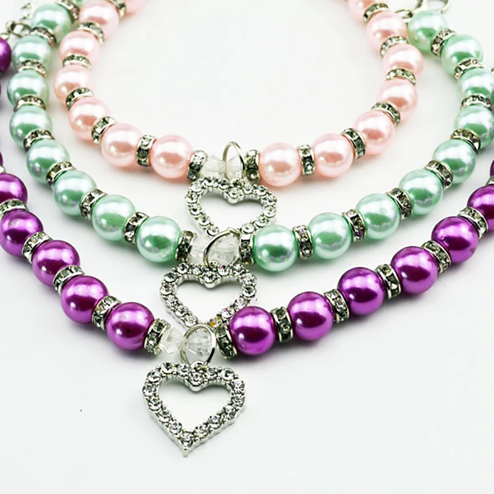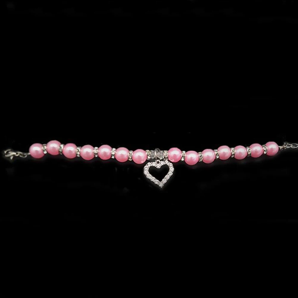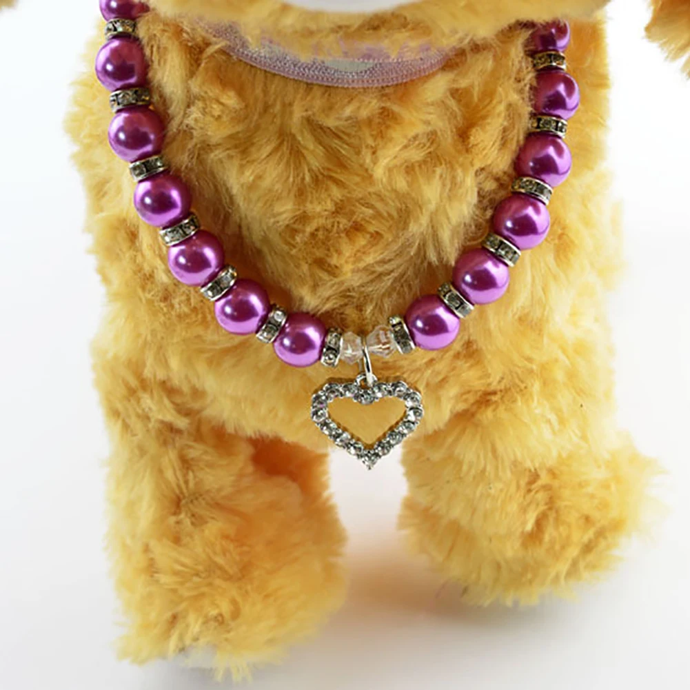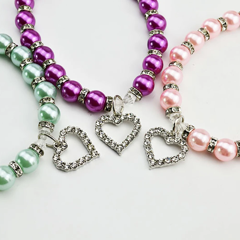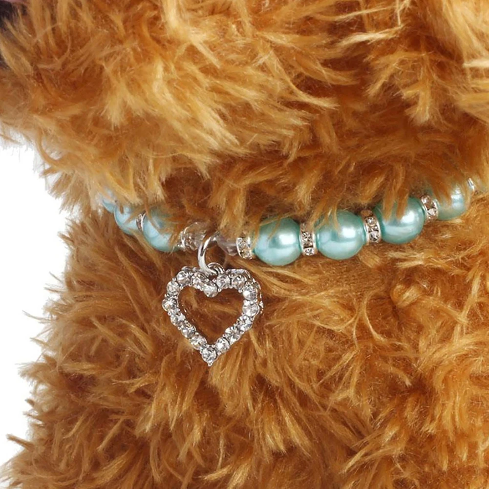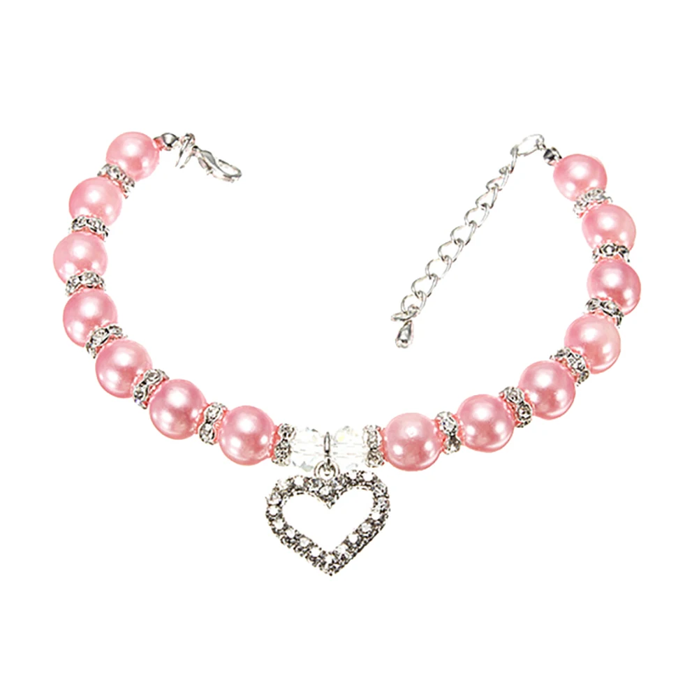 Красота Стразы искусственный жемчуг сердце любовь кулон щенок собака ошейник ожерелье
