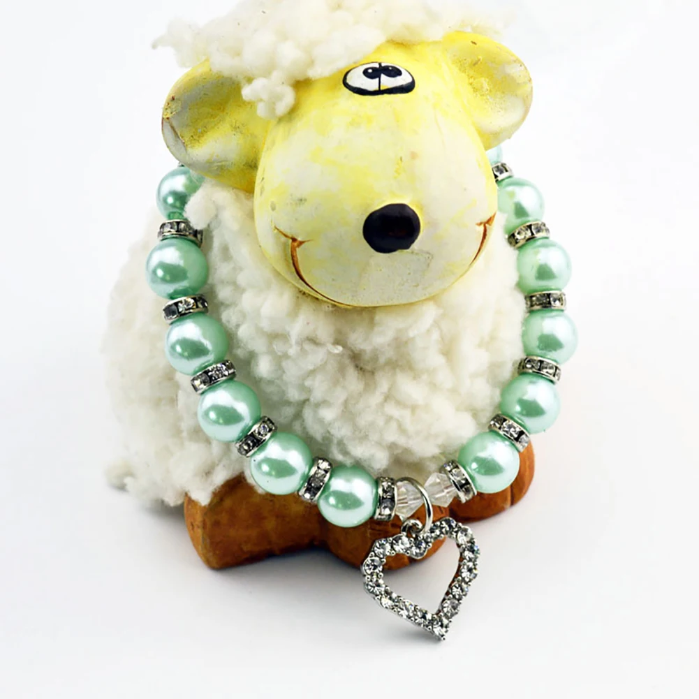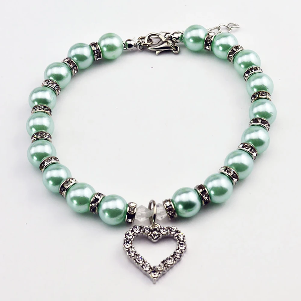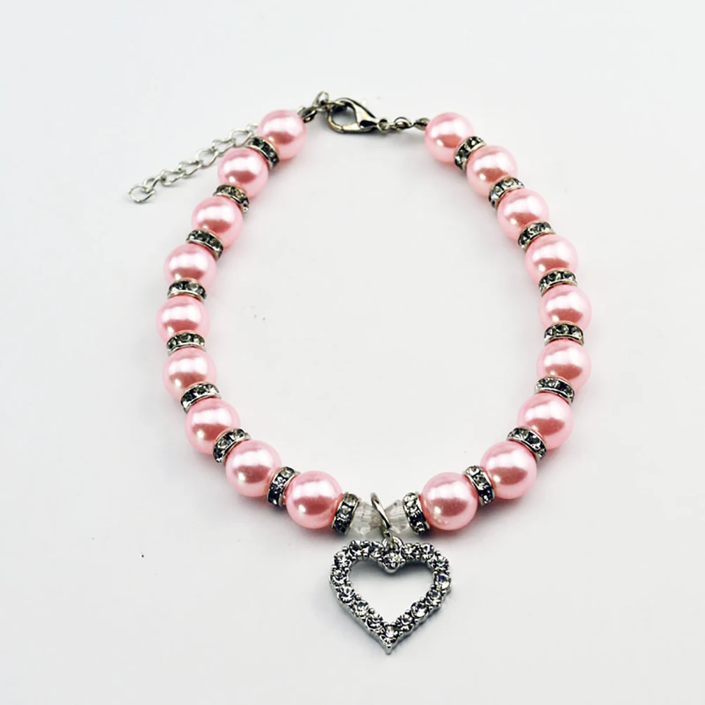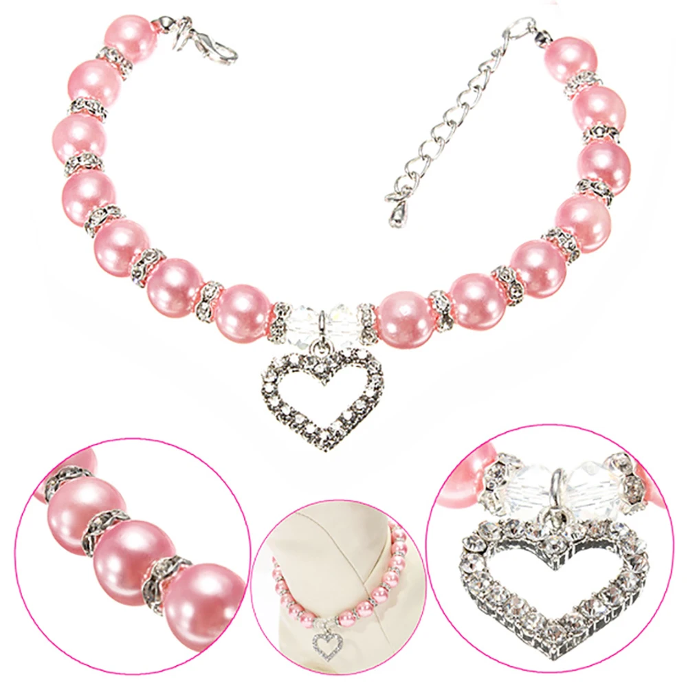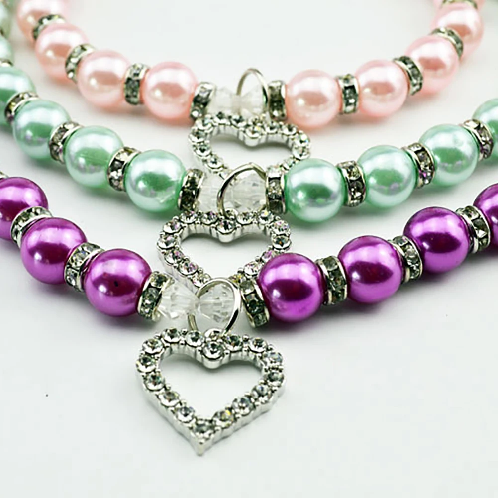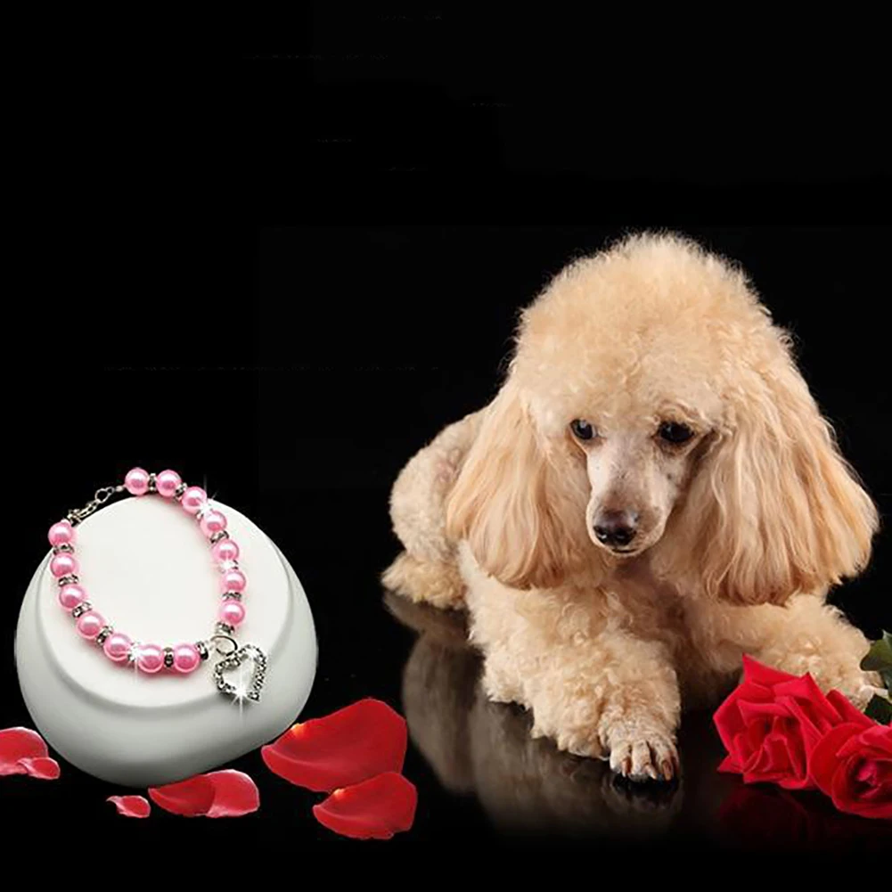 Красота Стразы искусственный жемчуг сердце любовь кулон щенок собака ошейник ожерелье