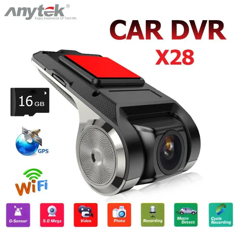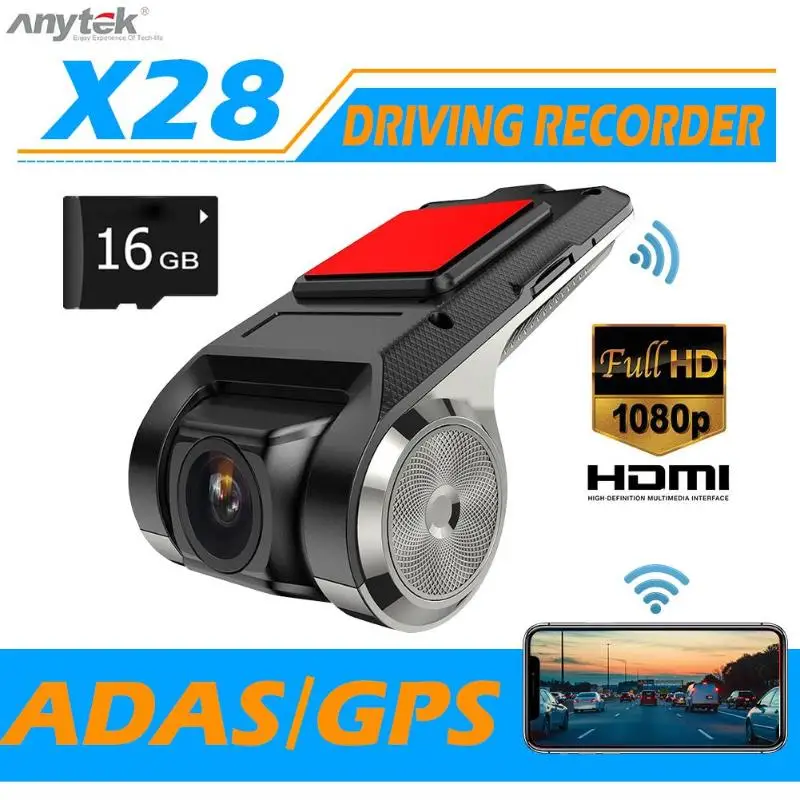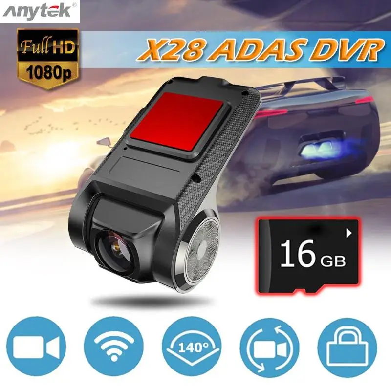 Anytek X28 Full HD 1080P Автомобильный видеорегистратор камера WiFi ADAS 150 градусов объектив видеорегистратор + 16 ГБ TF Карта