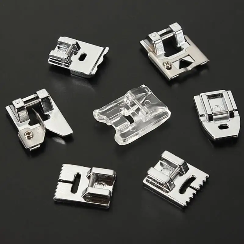 1. Стежка направляющая нога; 2. Пинтук ноги 5 канавок; 3. Атласная стежка ноги; 4. Лапка для шва "Зиг-заг", Ягуар; 5. Двойной шов ноги; 6. Невидимая молния ноги; 7. Роликовые Ноги