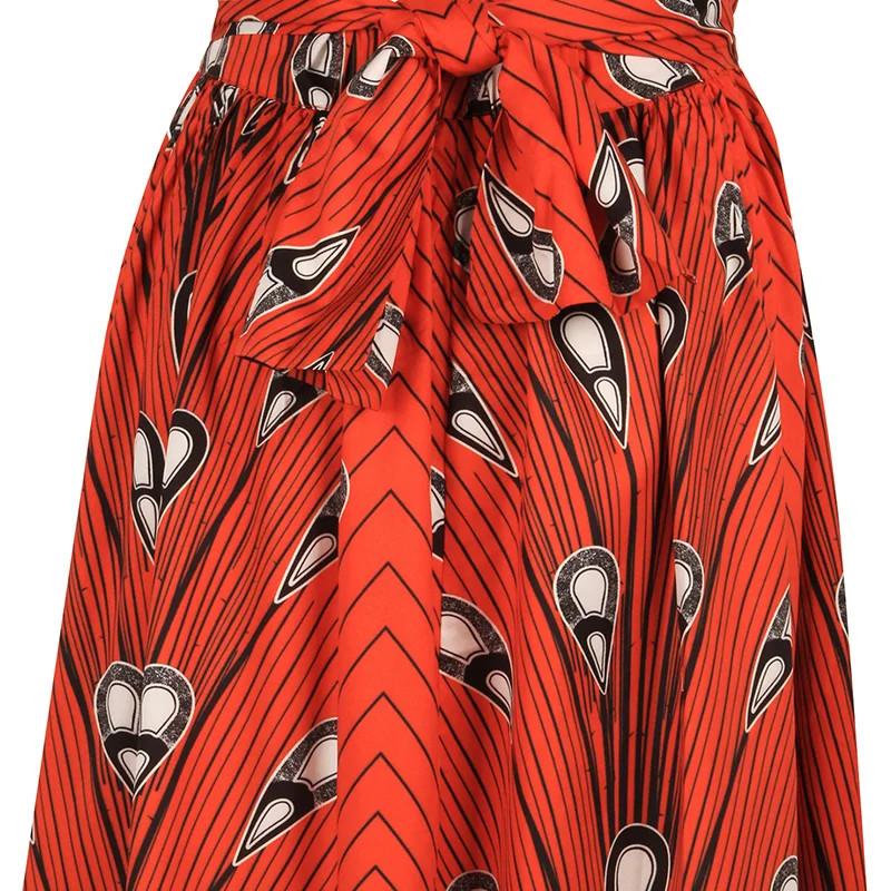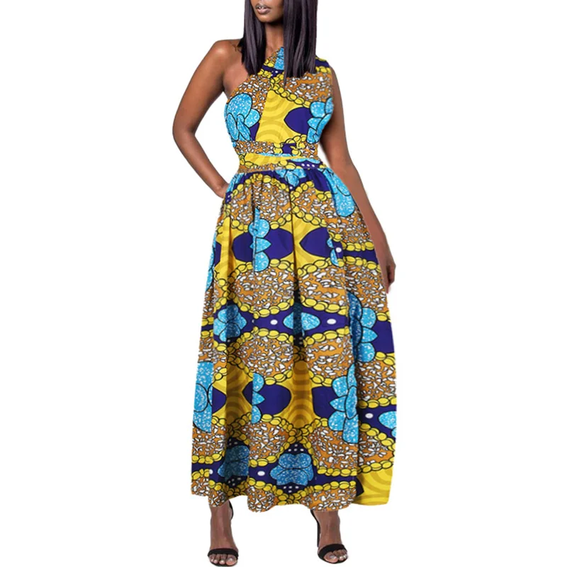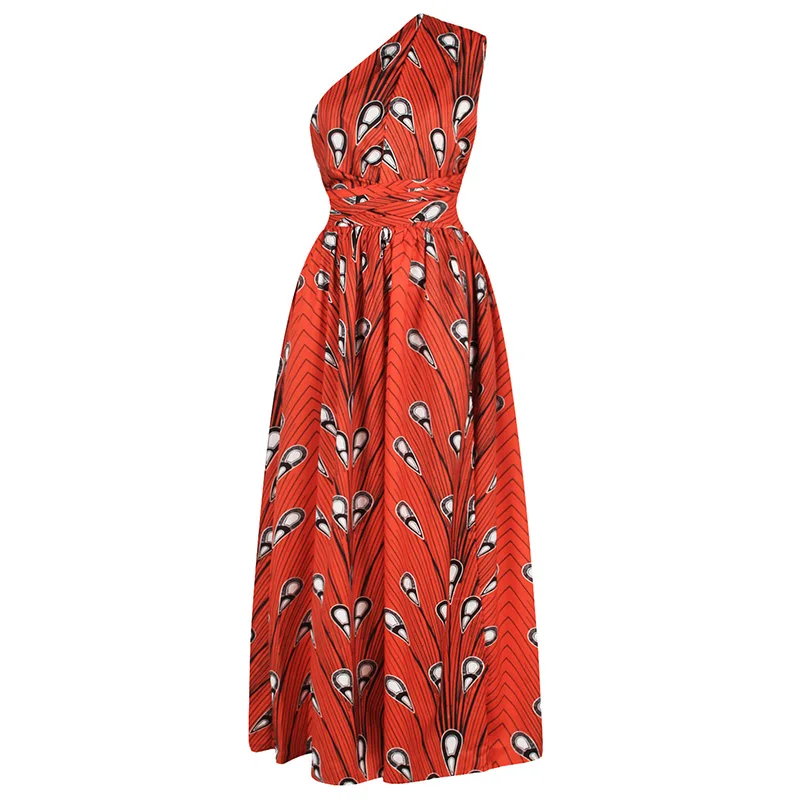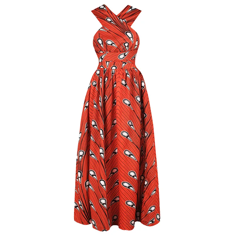 Стиль: яркий принт контрастного цвета в африканском стиле. Эластичная резинка на талии с застежкой-молнией; Трапециевидный силуэт с разрезом подчеркивает форму тела, делая его винтажным и шикарным.