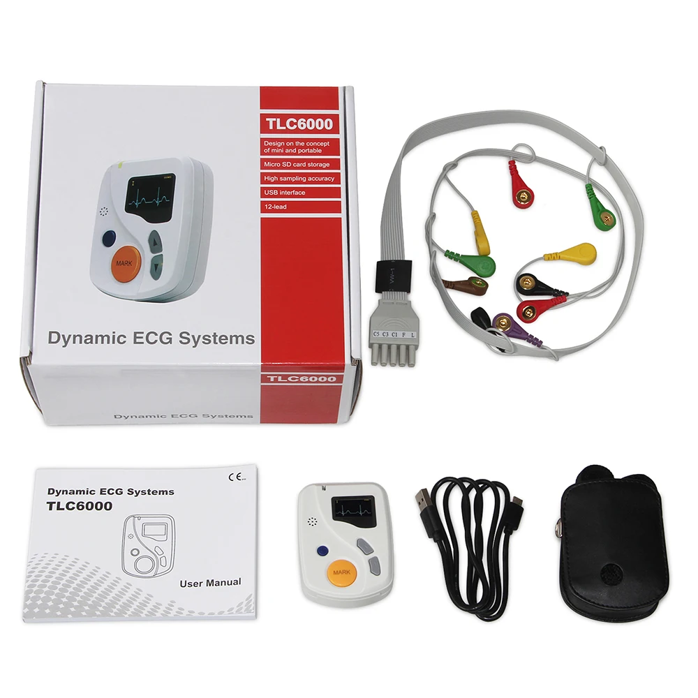 1X TLC6000 динамическая система ЭКГ машина (батареи не включены) 1 шт. свинцовый кабель 1 BagX электрод ECG 1X USB кабель 1х сумка 1X Руководство пользователя