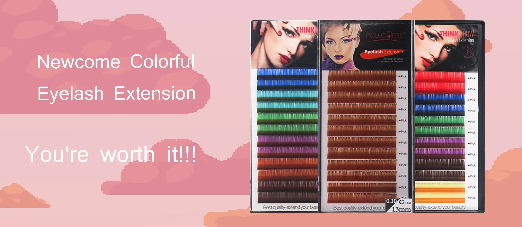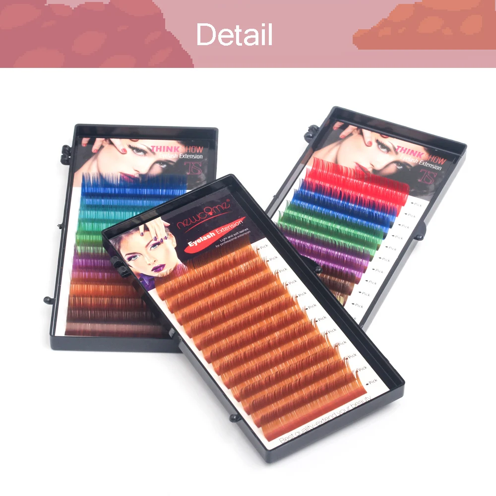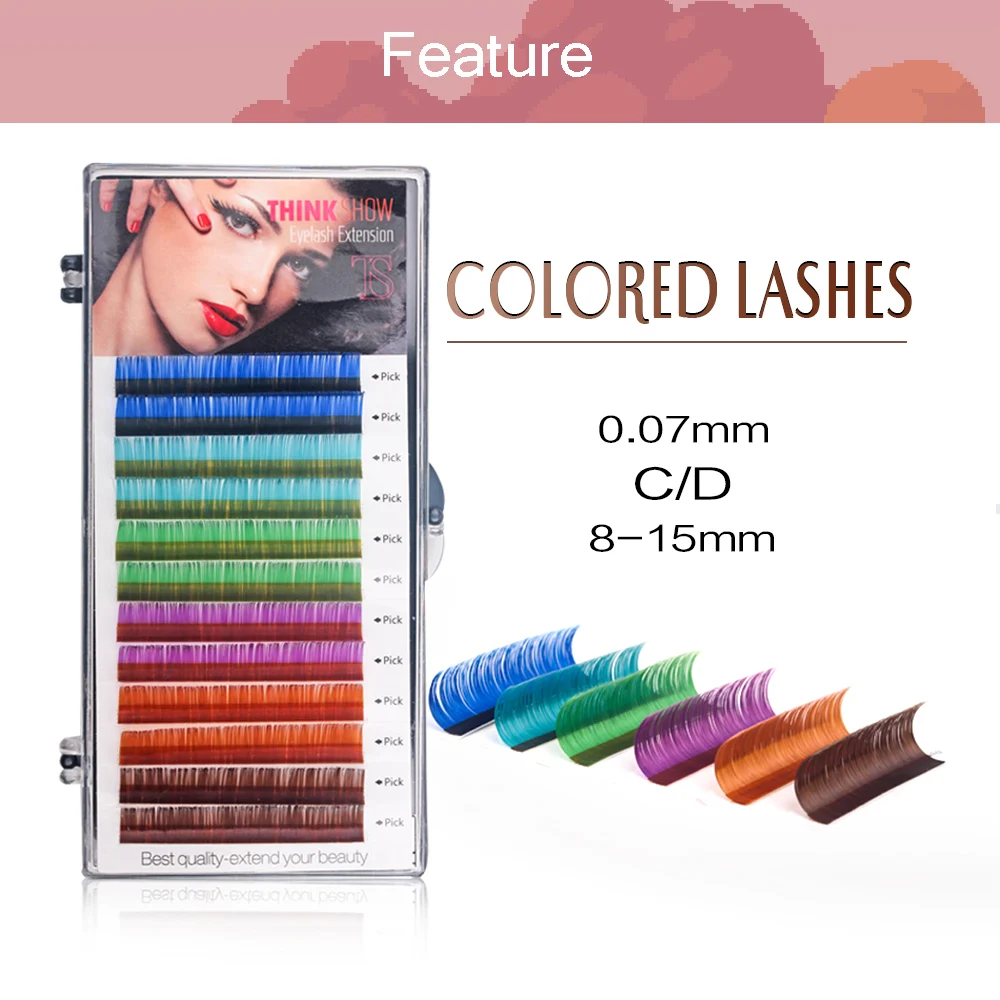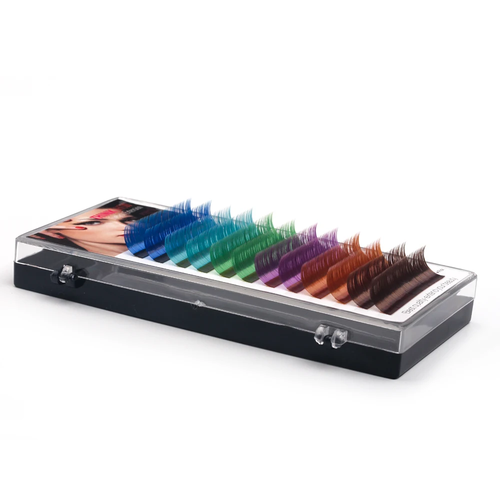 Наименование товара: цветные накладные ресницы Цвет: 3 вида цветных ресниц (6 цветов в коробке) Толщина: 0,07 мм, 0,10 мм Длина: 8 мм-15 мм Количество: 12 рядов/коробка