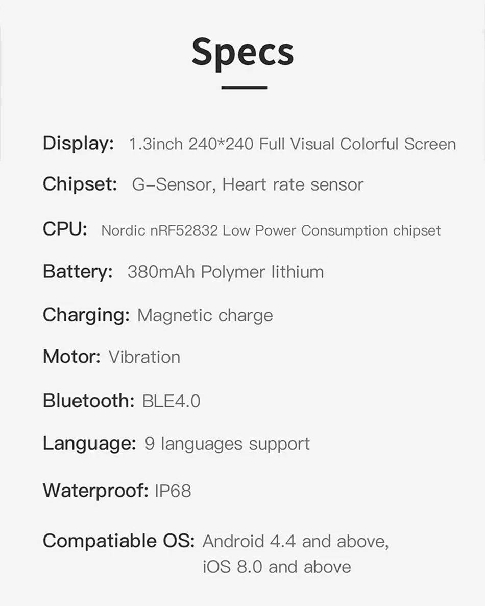 Динамический монитор сердечного ритма, монитор сна. Умные звонки и сообщения напоминание: звонки, Twitter, Facebook, Wechat и т. Д., все будут отправлены на дисплей запястья и с вибросигналами различные спортивные узоры, управление приложением просмотр шагомера, больше калорий функции: монитор сна, пульсометр, монитор движения (шаги, калории), шагомер, синхронизация сообщений, входящий вызов, будильник, вибрация