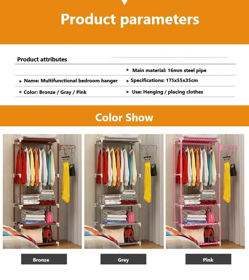 Название: Простая вешалка для пальто Материал: "распылительная пластиковая труба + нетканый материал с покрытием Цвет: розовый в горошек, серый, бронзовый Размеры: 175*55*35 см