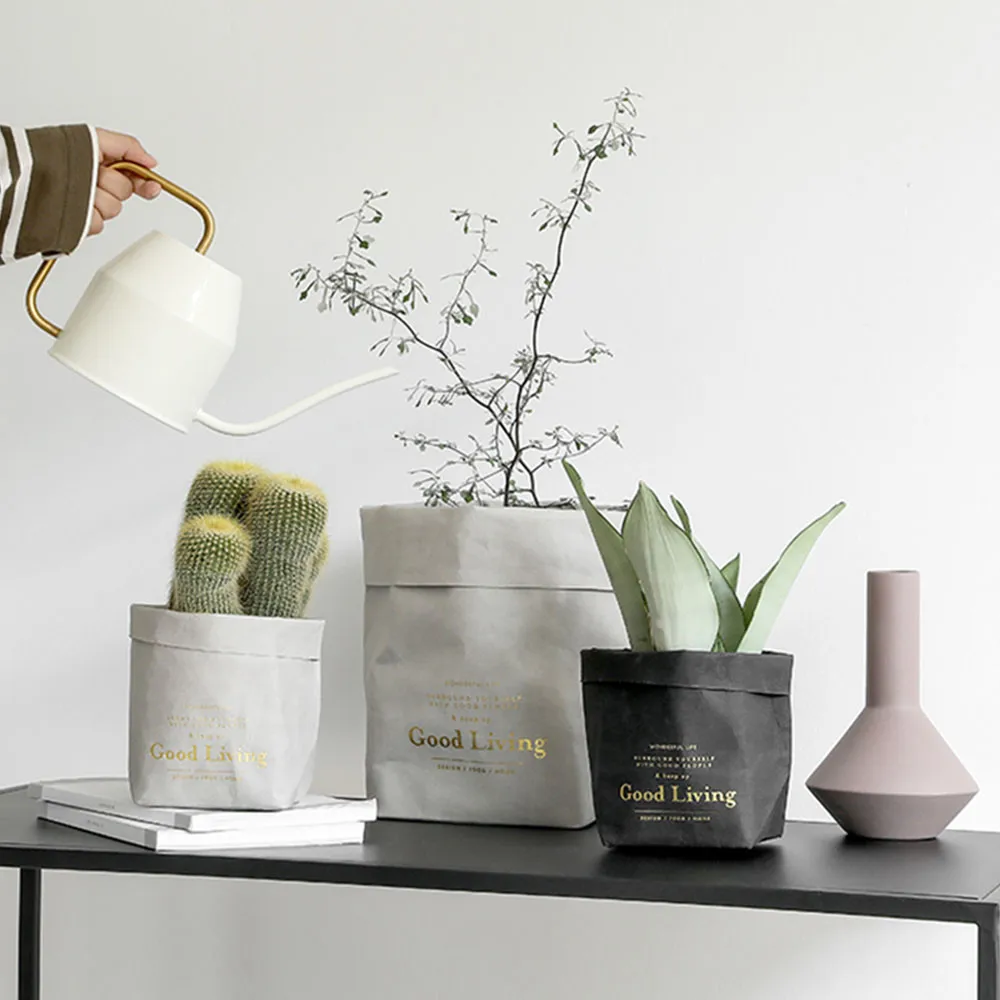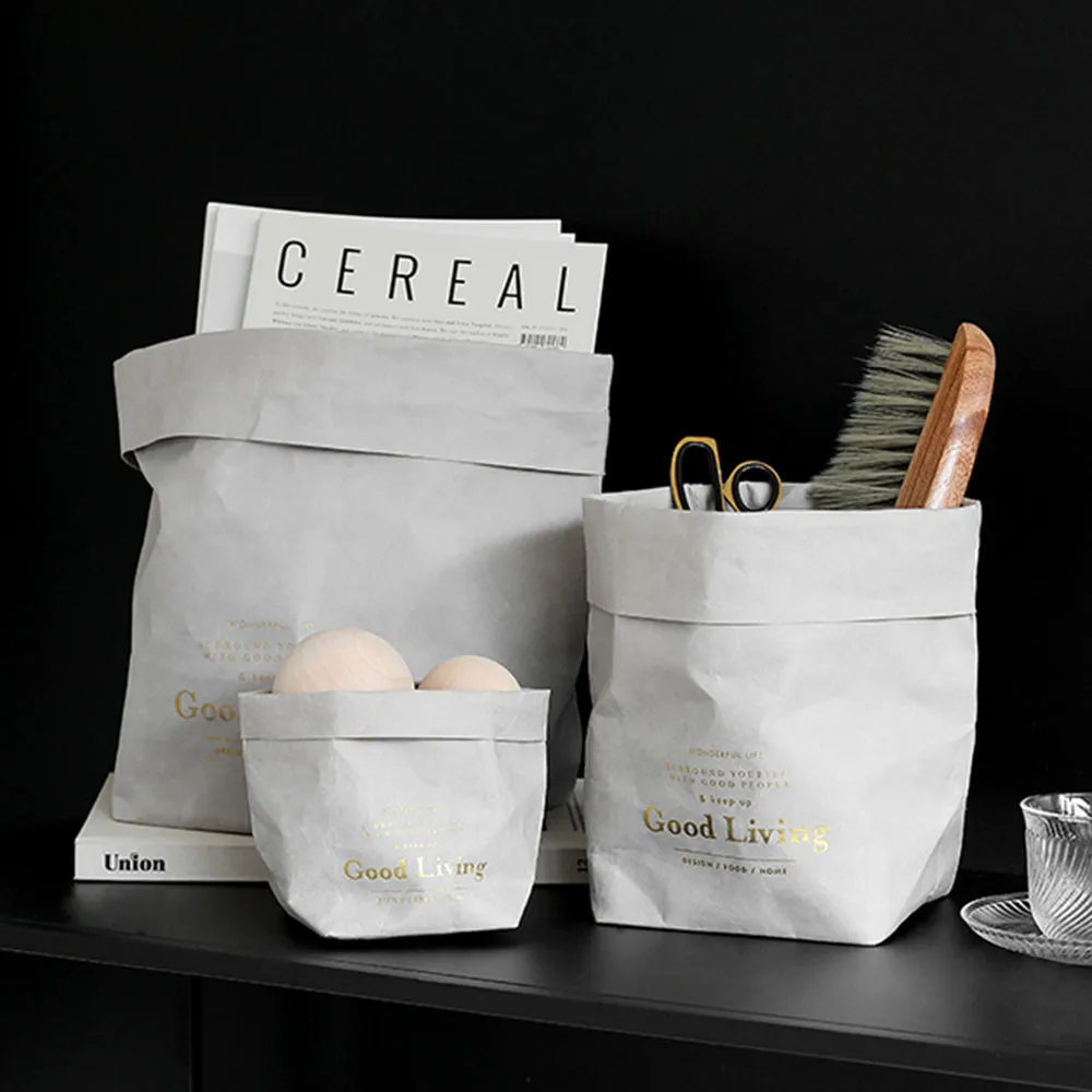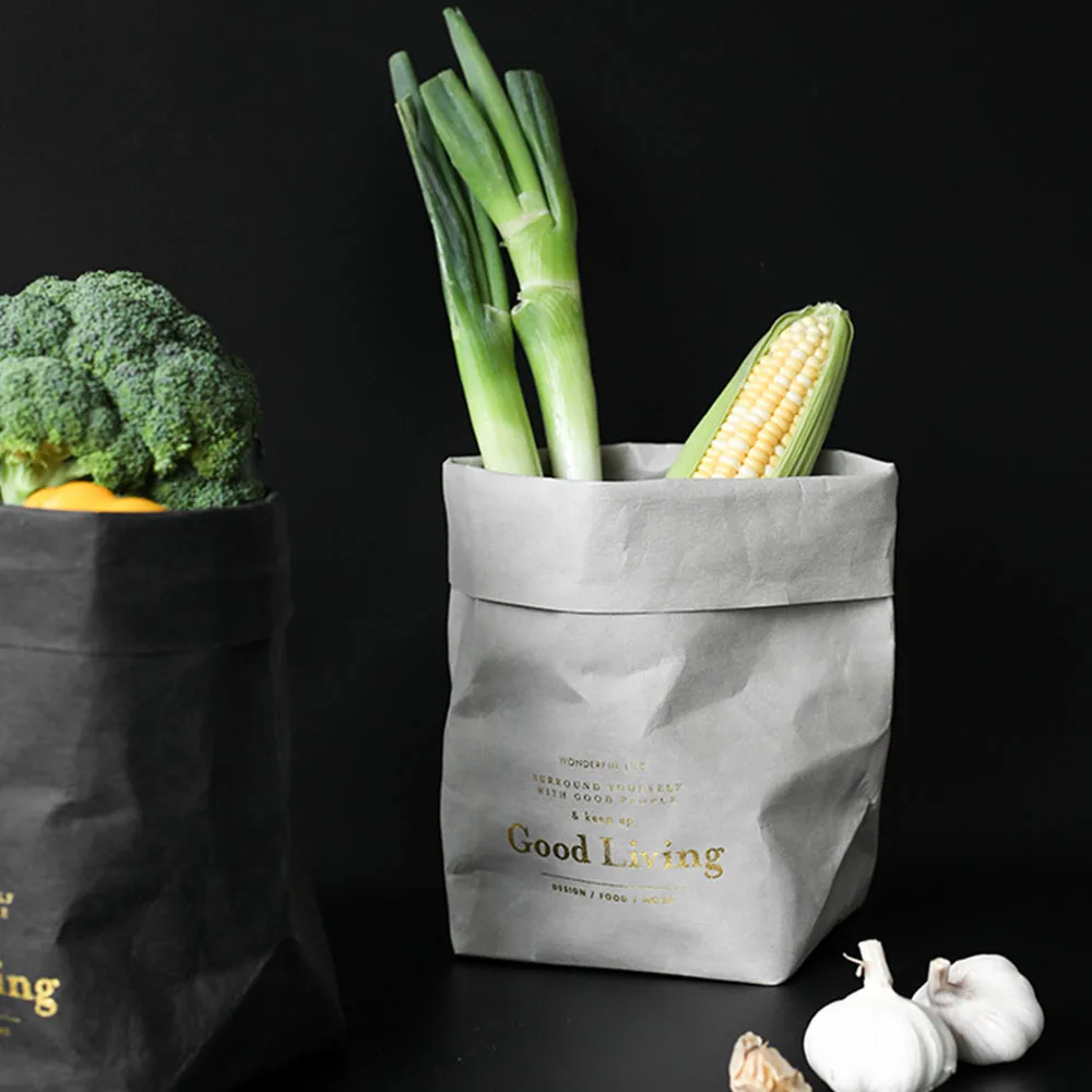 Черная моющаяся сумка для хранения из крафт-бумаги серый складной цветочный пакет для растения с горшком для хранения хлеба, фруктов, органайзер для игрушек и одежды