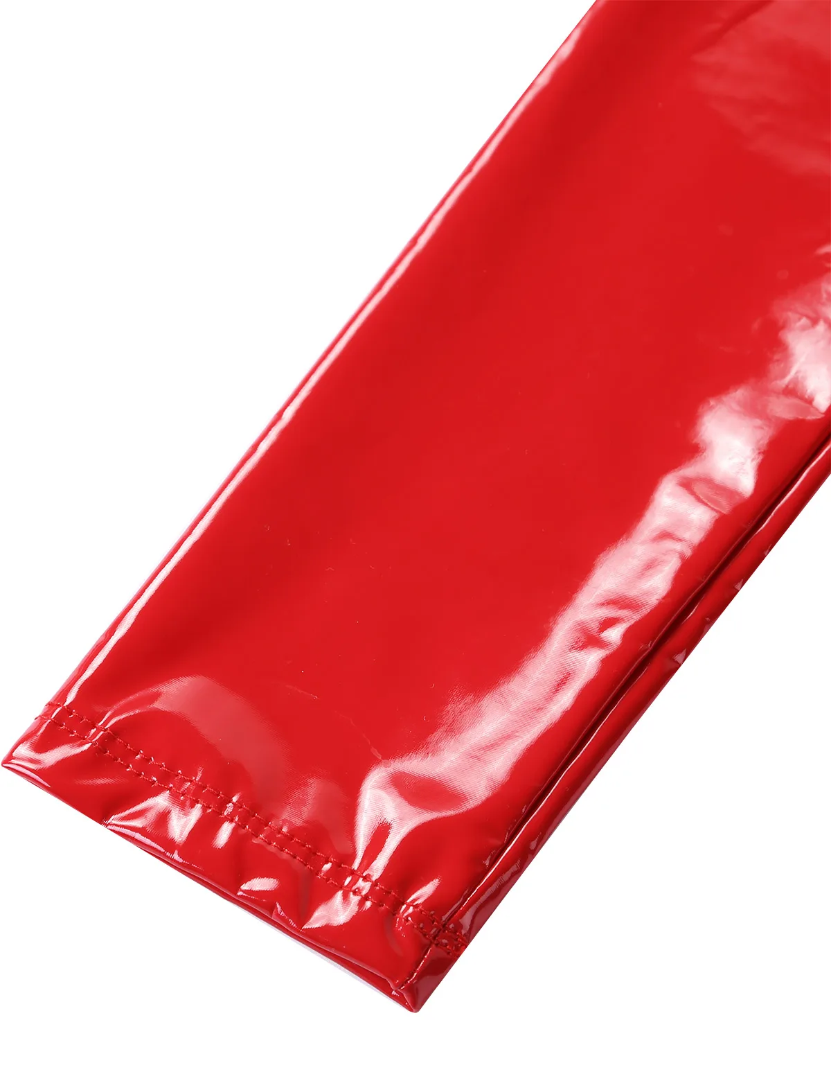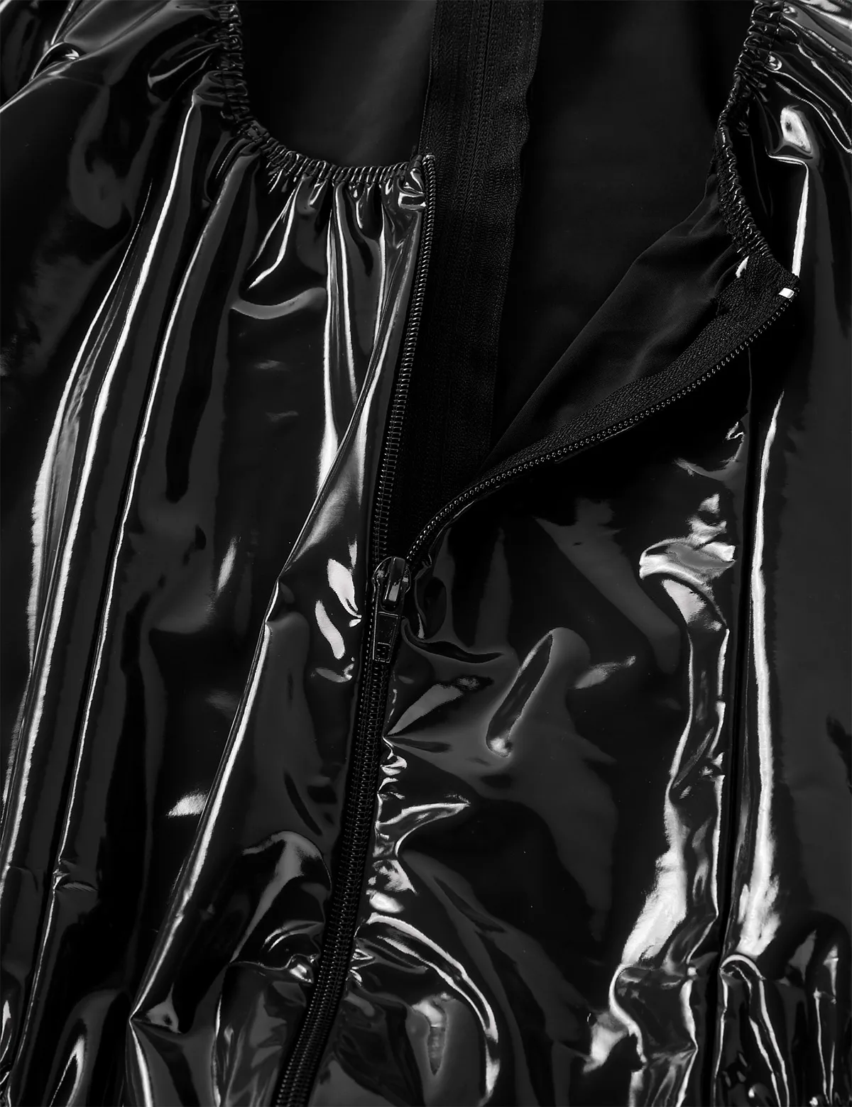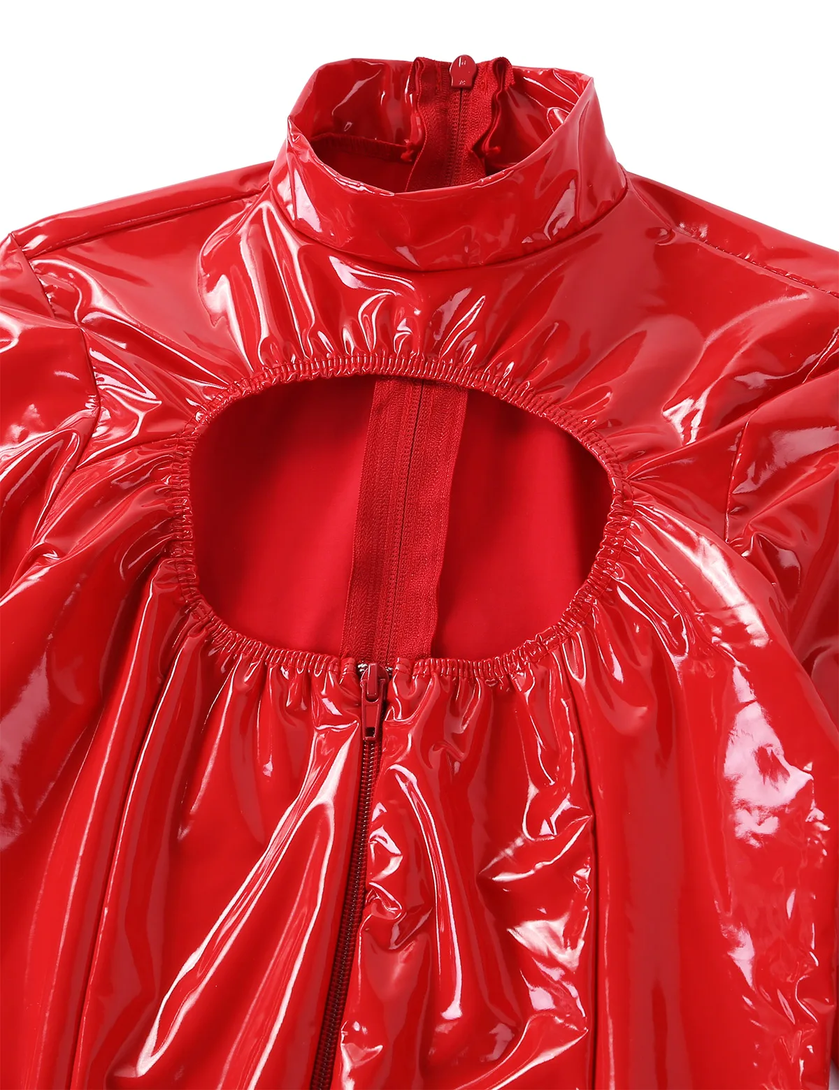 Женский Цельный боди из лакированной кожи с высоким вырезом, внешний вид мокрый.