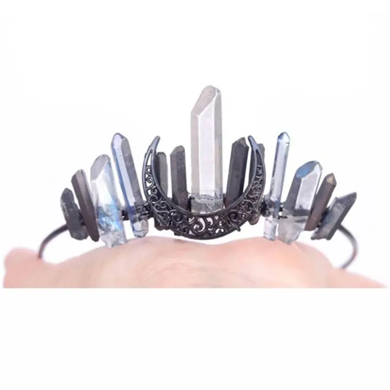 Контрастный цвет имитация необработанного кристалла украшения, полые геометрические сплава черный полумесяц в центре, намотки с проволокой.