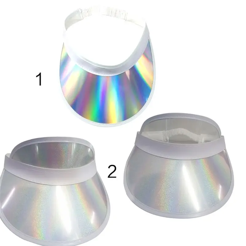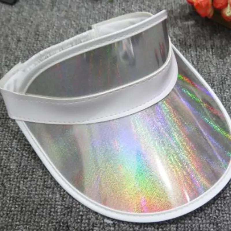 Женская металлическая голограмма Цветная Пластиковая широкая изогнутая шляпа с козырьком от солнца с эластичным ремешком на спине в стиле хип-хоп пустая верхняя солнцезащитная Кепка