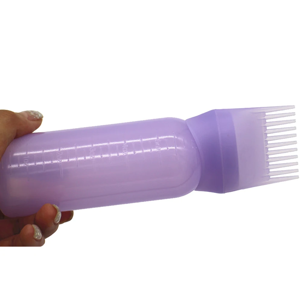 Просто заполните бутылка для краски с вашим предварительно смешанный цвет волос и используйте насос экшн-ручка для того, чтобы получить краситель течет через расческой головной убор.