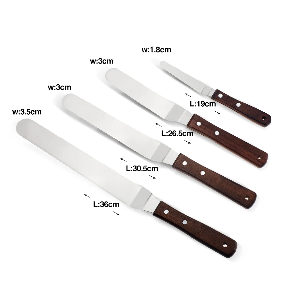 Наименование товара: Профессиональный шпатель для торта из нержавеющей стали с деревянной ручкой-Многофункциональное использование для дома, кухни, пекарни, приготовления пищи Материал: нержавеющая сталь Размеры: 4/6/8/10 дюймов Функция: резак для торта/сливочный крем Характеристика: 1. Эргономичная конструкция ручки из полипропилена чрезвычайно удобна и обеспечивает надежное сцепление при обледенении пирожных или пирожных; Нескользящая Текстура обеспечивает стабильность 2, глазурные лопатки не дают вашим пальцам глазурь, создавая гладкую поверхность при обледенении более крупных пирожных или наполняя слоями 3. Висячая петля для хранения