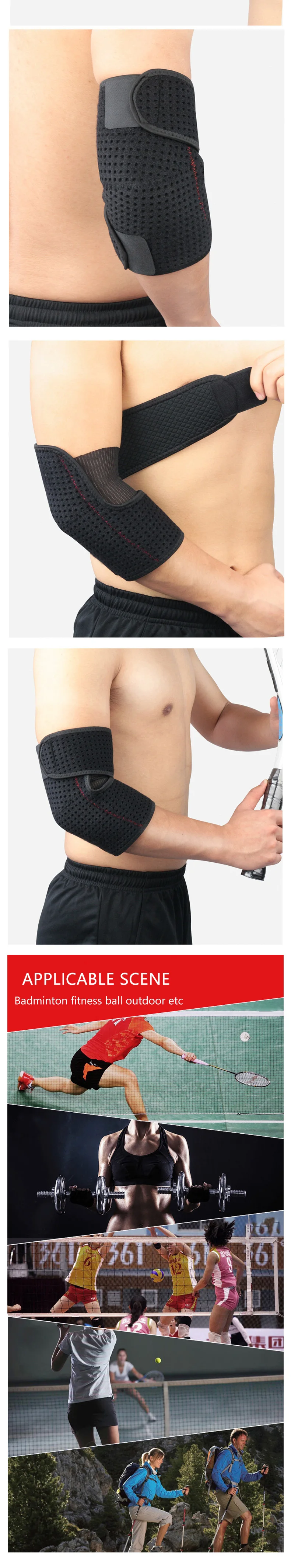 Это прочная Поддержка локтя и помогает предотвратить повреждение. Высокая гибкость, мягкое ощущение, удобно носить, подходит для занятий спортом и фитнесом.
