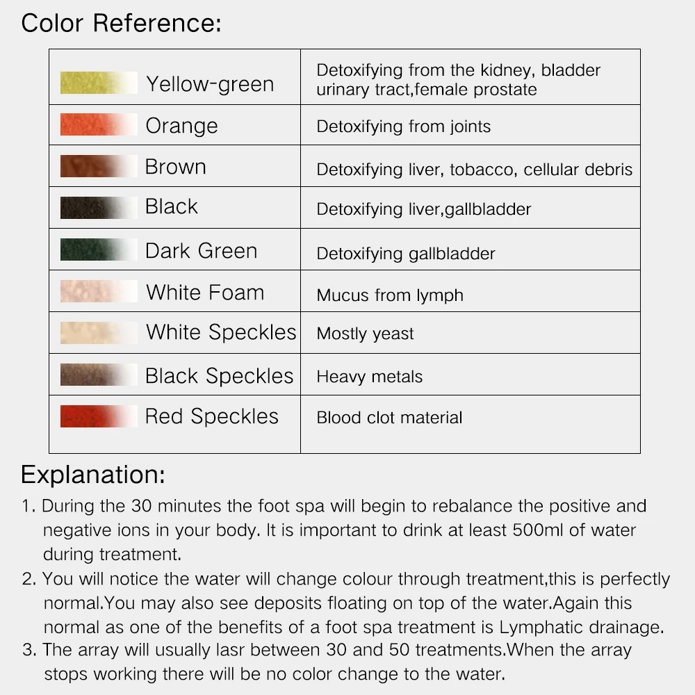 1. Основным преимуществом этого продукта является то, что его можно использовать отдельно, а также можно использовать вместе с Детокс-машиной (с массивом), морской солью для ванны, травяной таблеткой для ванны, шариком для ванны и т. д. Который безопасен и привлекателен под заказ, прочный и легкий.