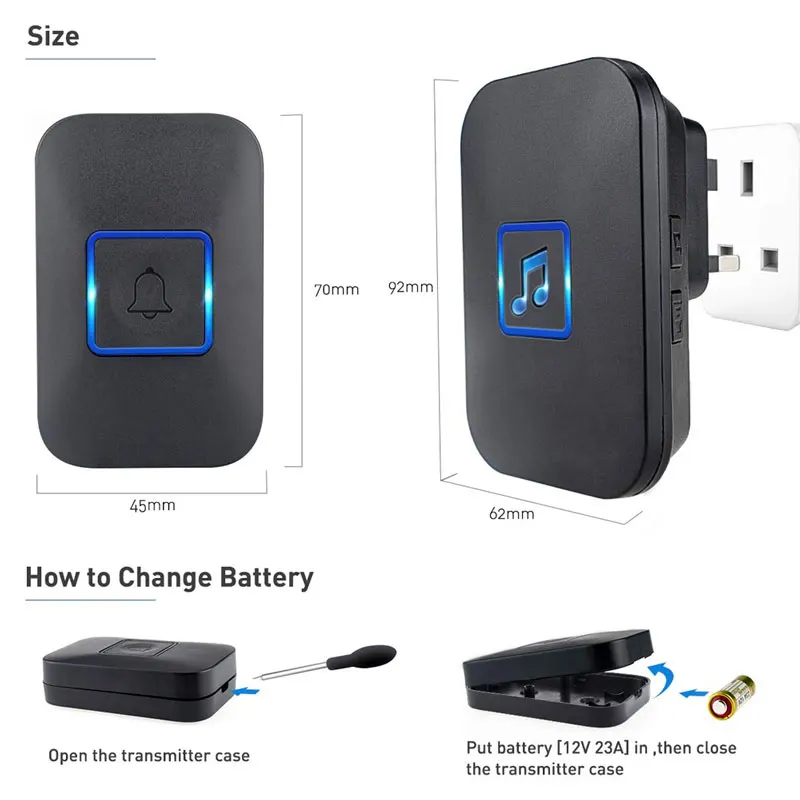 Высокопроизводительный передатчик с ультра-низким энергопотреблением. Система дверного звонка означает, что он может Выдерживает прямой контакт с водой, что означает, что распыления воды и предметов, превышающих 1 миллиметр, не могут Проникайте во внутренние компоненты передатчиков, чтобы вы могли использовать их снаружи или внутри вашего дома Или место работы. Сильный дождь не прерывает работу передатчика. Рабочие температуры для Дверной звонок-22 ° F и 158 ° F