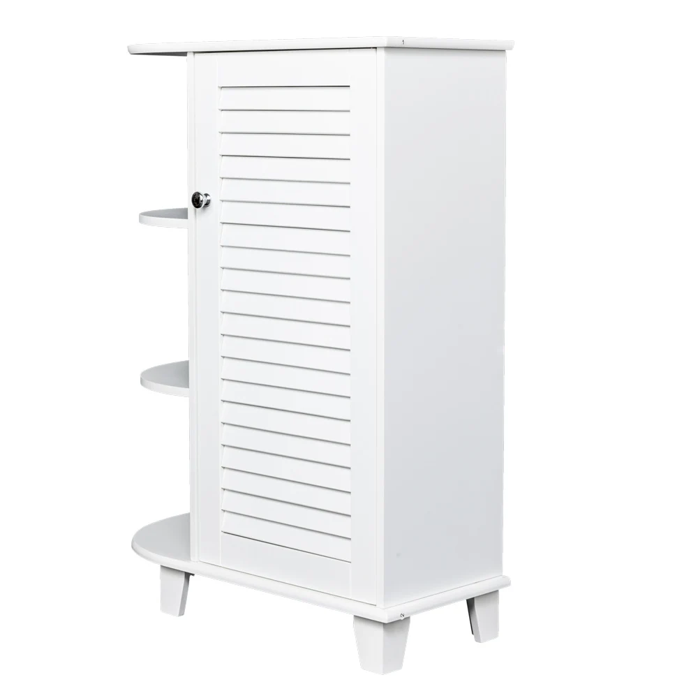 Этот шкафчик для хранения изготовлен из высококачественного материала MDF, который является экологически чистым и обеспечивает прочность. Эти ящики также имеют несколько функций. В дополнение к трем закругленным боковым полкам, в шкафчик также входит одна фиксированная и одна регулируемая внутренняя полка, скрытая одной дверью и одной верхней полкой. Он отличается традиционным дизайном двери затвора, который может использоваться в качестве украшения вашего дома. Кроме того, его легко собрать. Этот шкаф для хранения может хранить много вещей и помочь вам сэкономить много места.