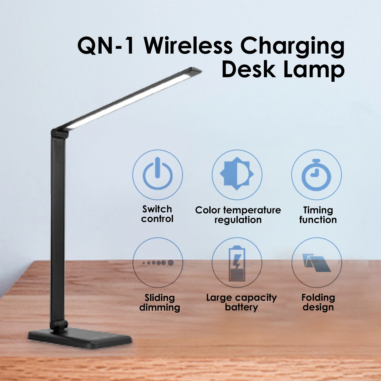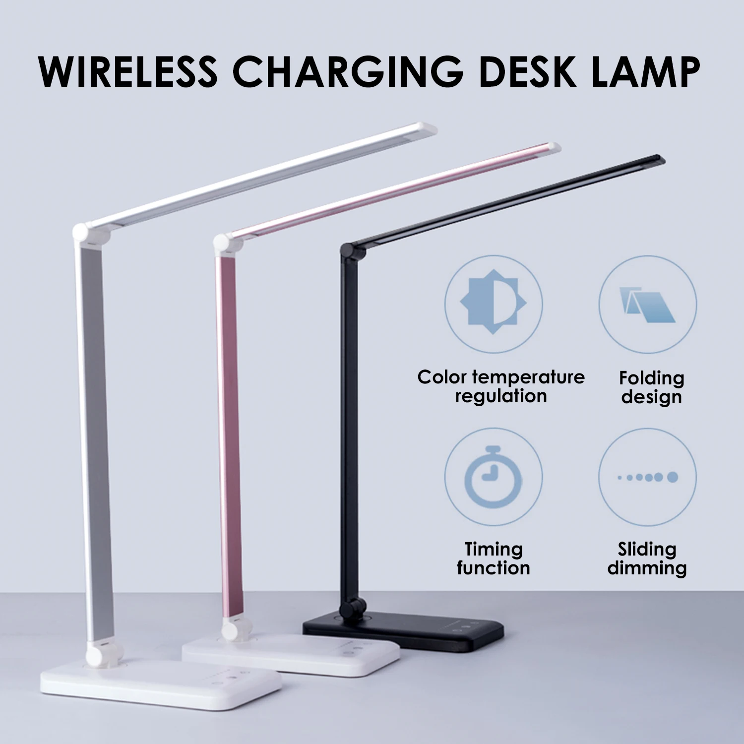 Светодиодный настольный светильник, настольная лампа, Беспроводная зарядка, креативная защита глаз, Тиммер, светильник для чтения, сенсорное управление, беспроводное зарядное устройство QI