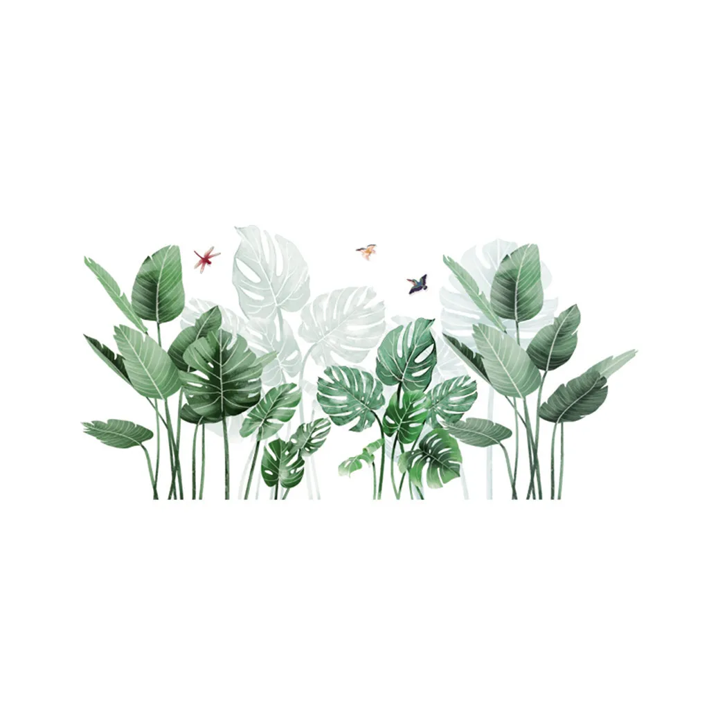 Тропические растения и листья наклейки на стену для дома детская комната зеленые растения наклейки