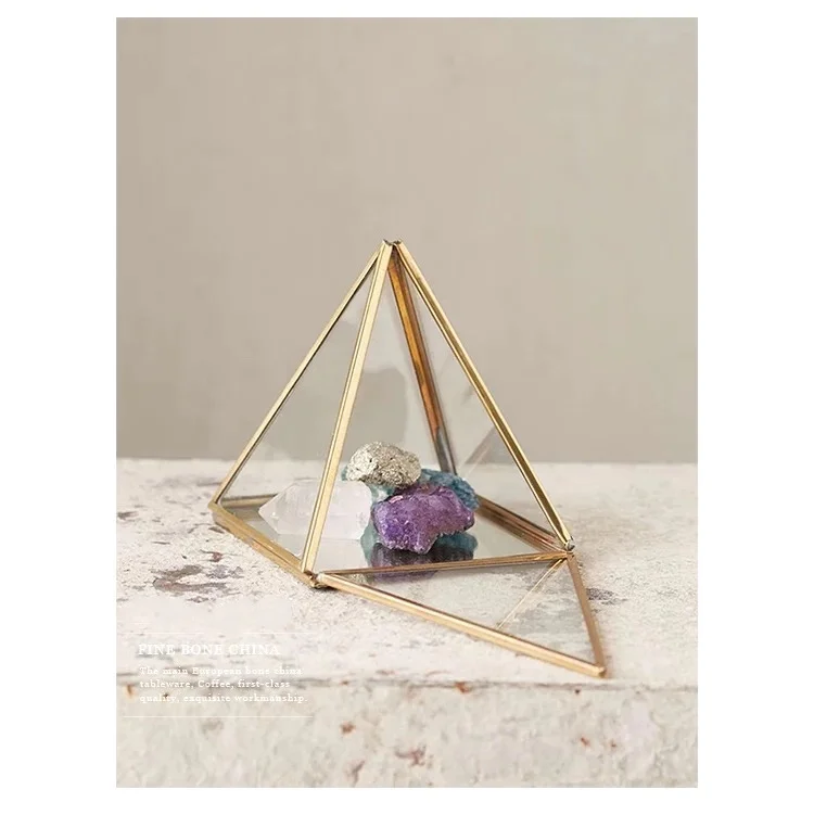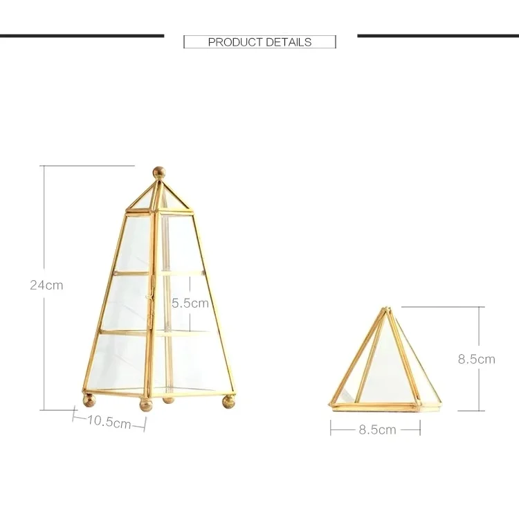 3 яруса коробки для хранения ювелирных изделий Геометрическая коробка для хранения ювелирных изделий дисплей латунь стекло ювелирное изделие Пирамида Органайзер прозрачная коробка