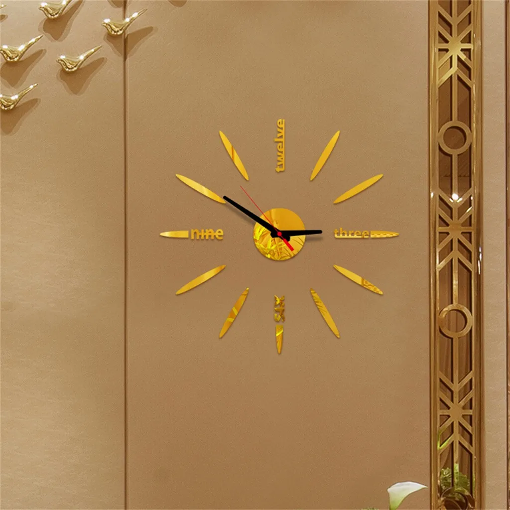 1 комплект Настенная Наклейка с зеркальным эффектом и часами (без аккумулятора)
