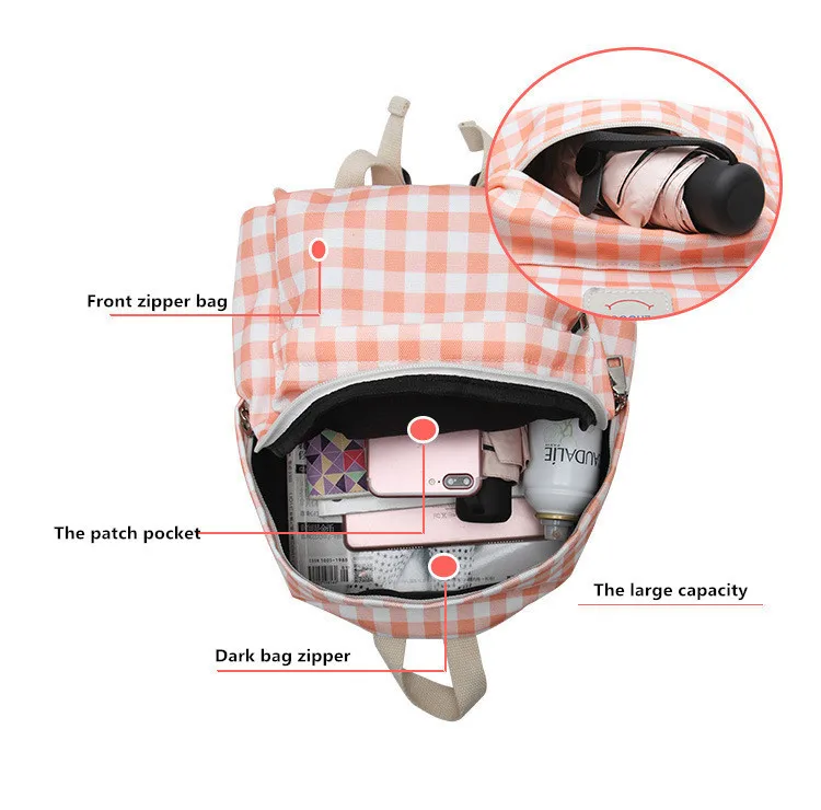 Женский рюкзак в клетку, повседневный рюкзак из парусины для путешествий, для студенток, 2019