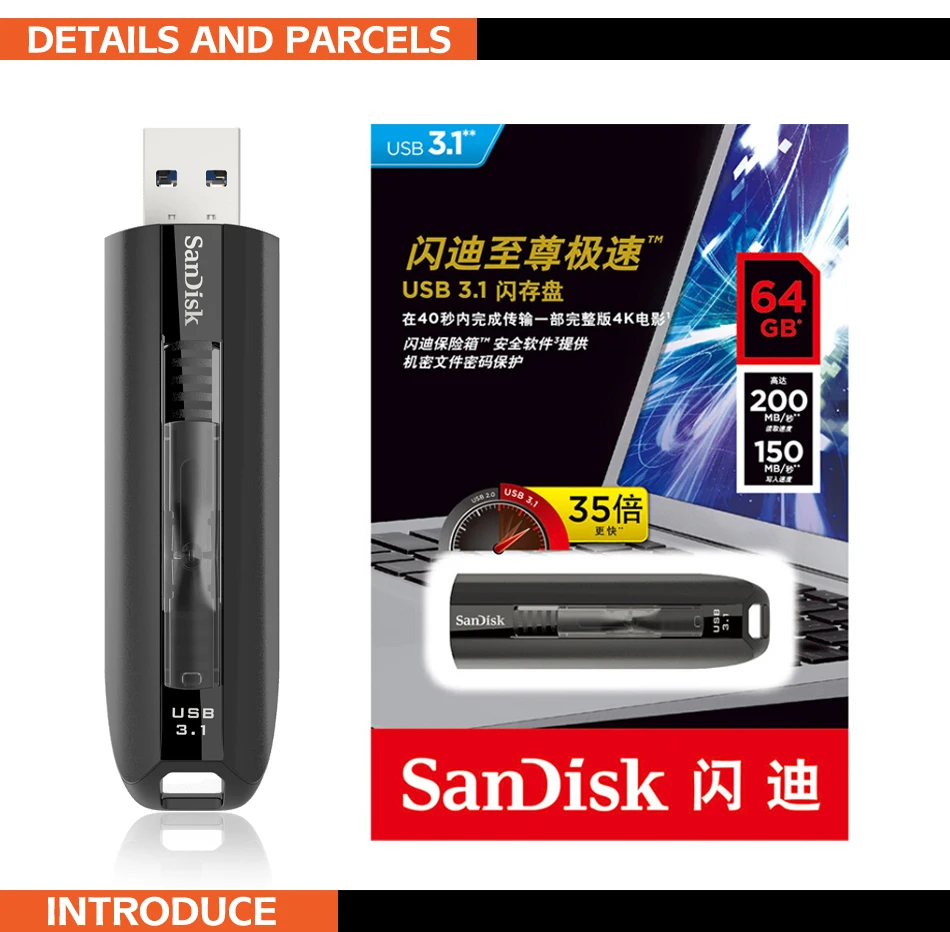 SanDisk Extreme Go 64 GB USB Flash 3,1 memoria Stick 128 GB USB lave Pendrive CZ800 alta velocidad escritura 150 МБ/с. para ordenador/tv