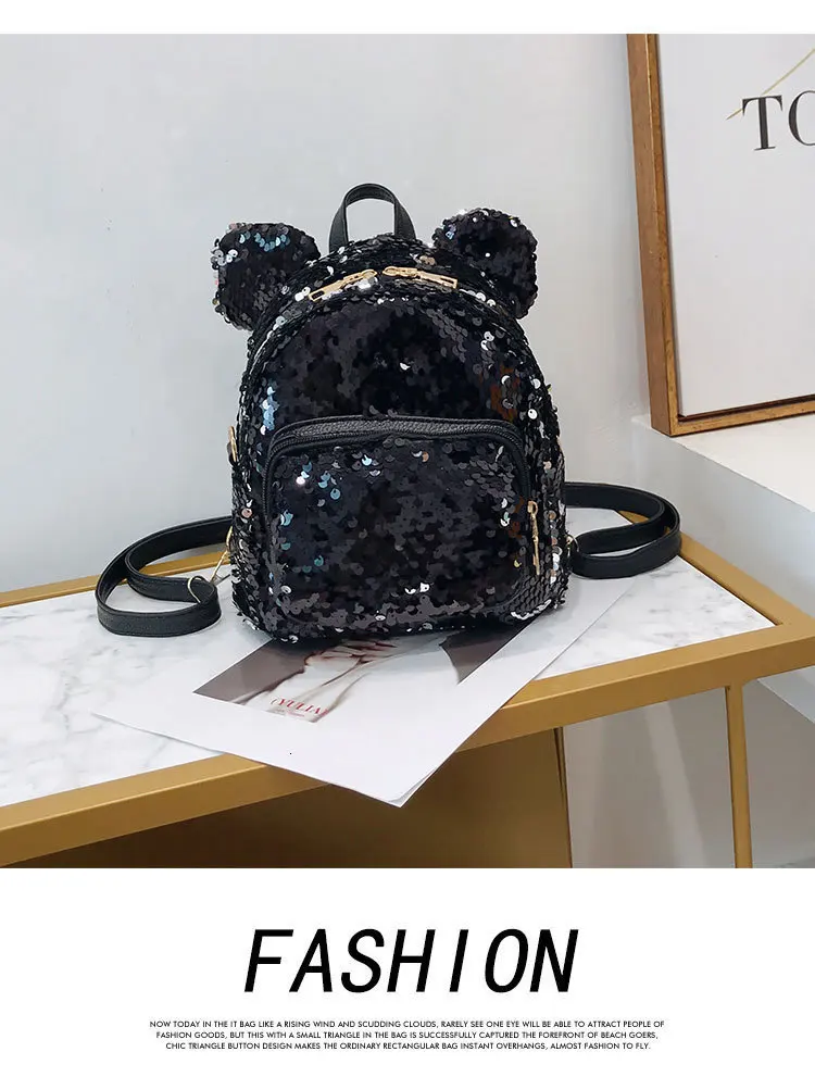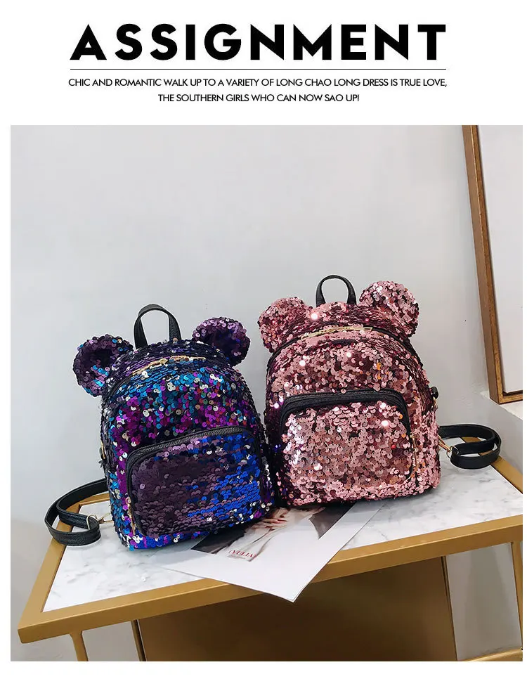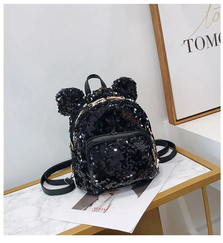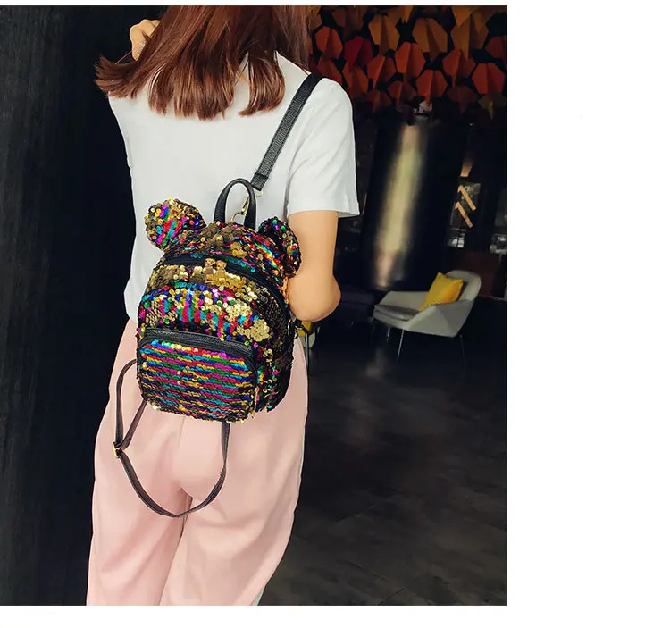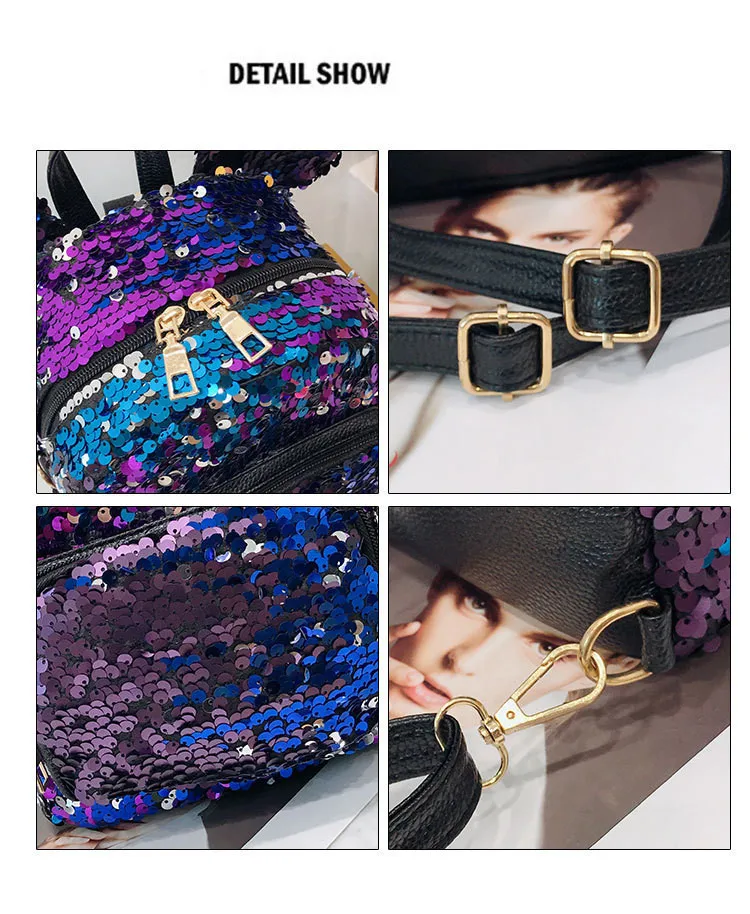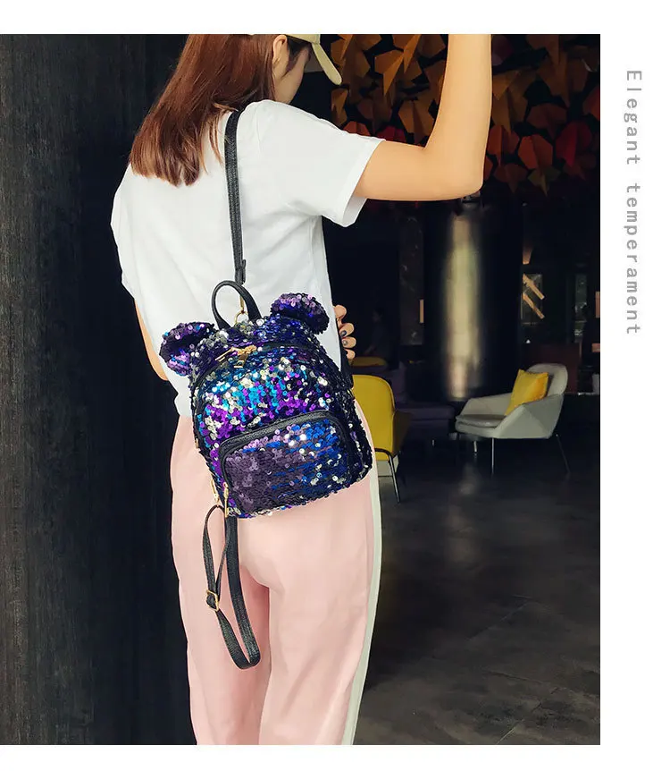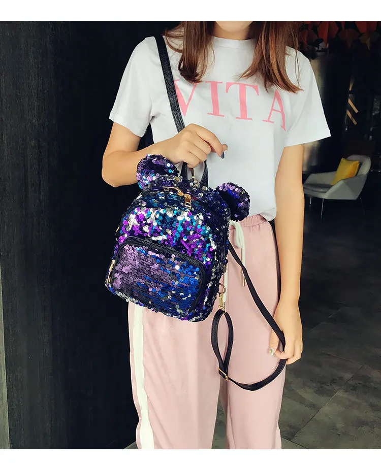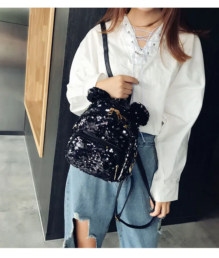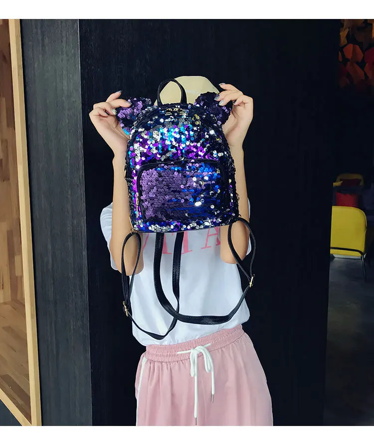 Блестящий женский рюкзак с блестками, милые уши, двойная сумка на плечо, мини-рюкзаки с блестками для девочек, дорожный рюкзак