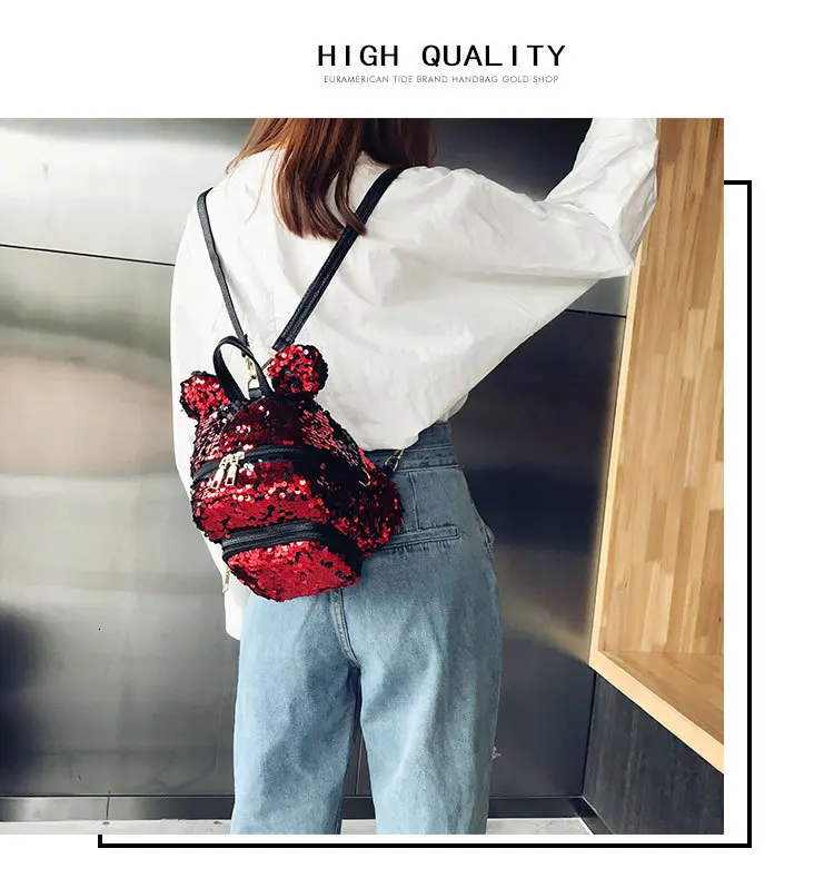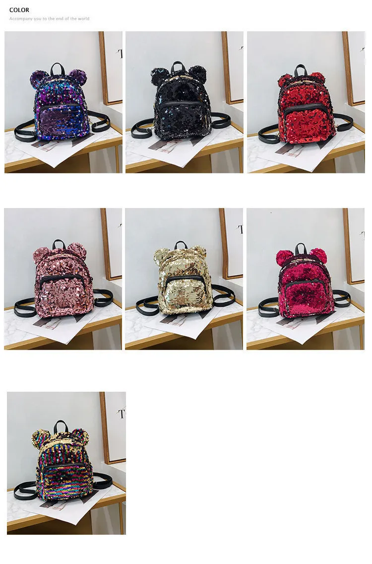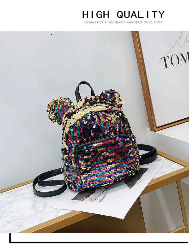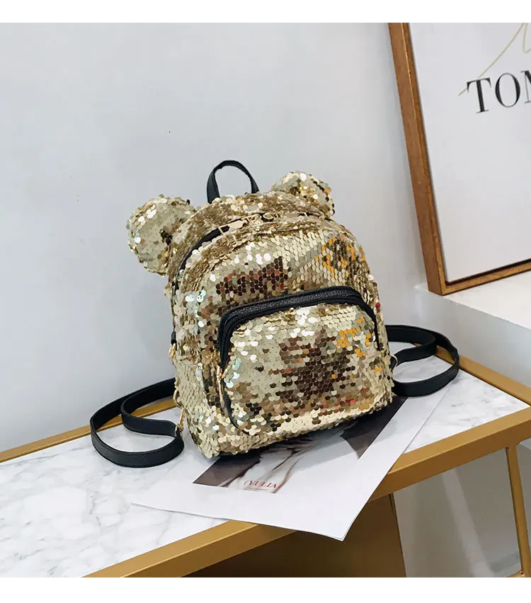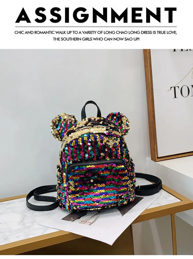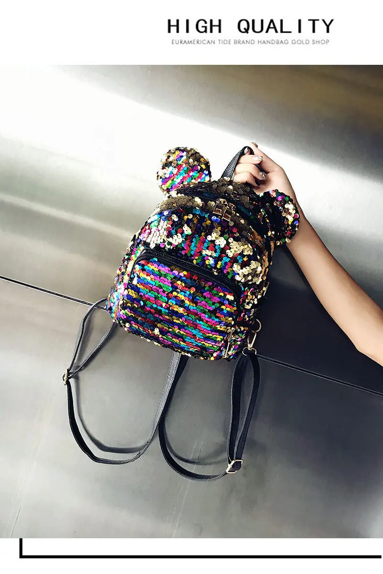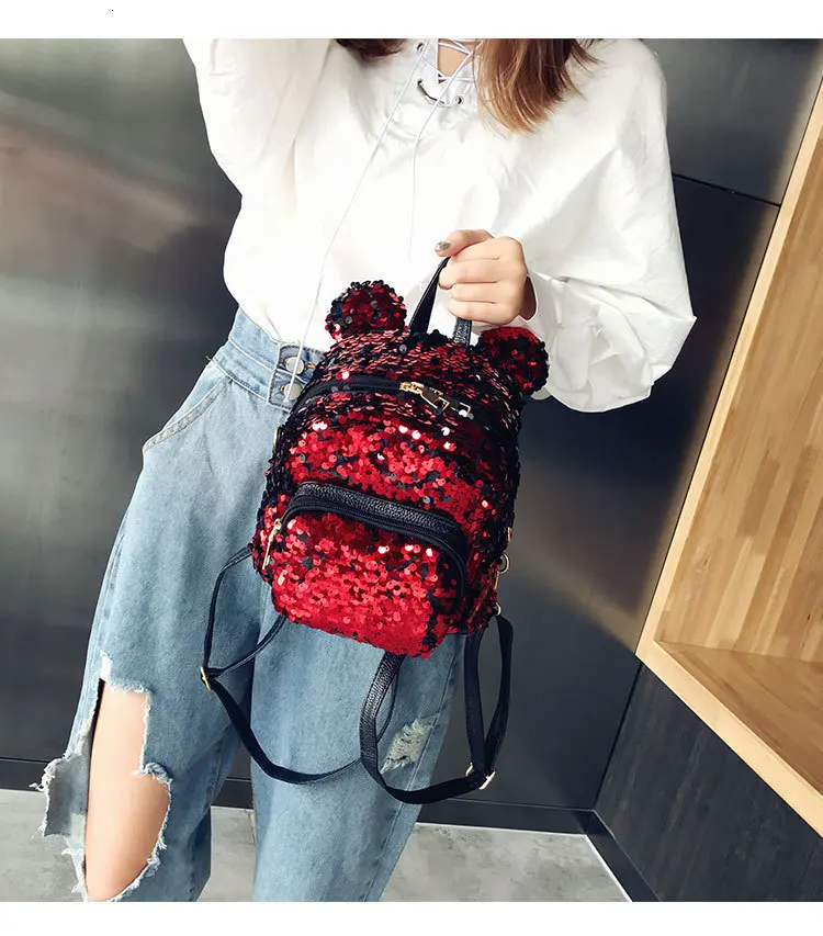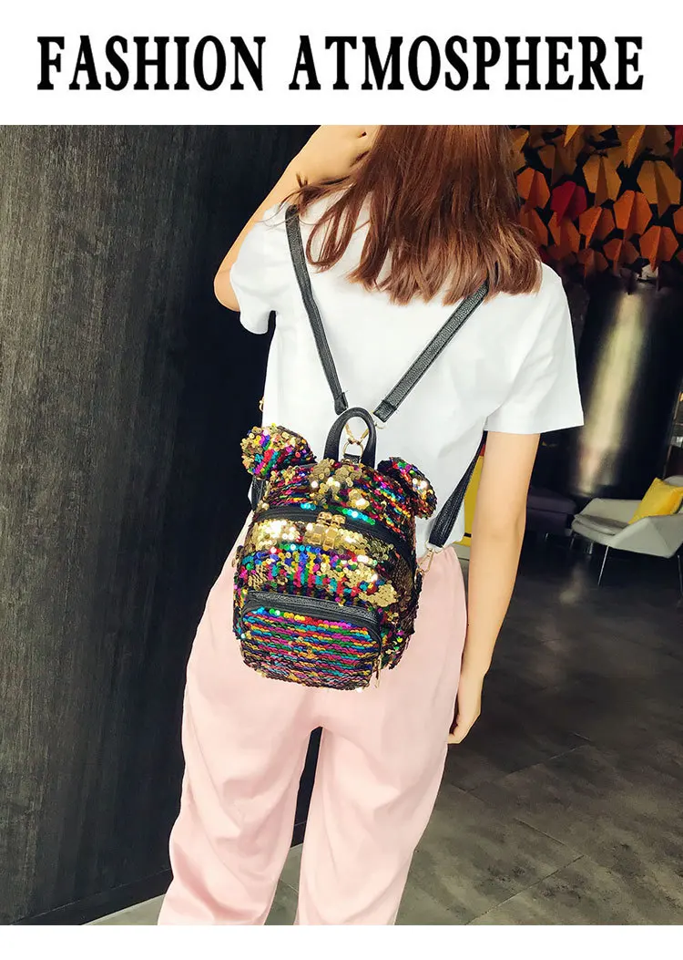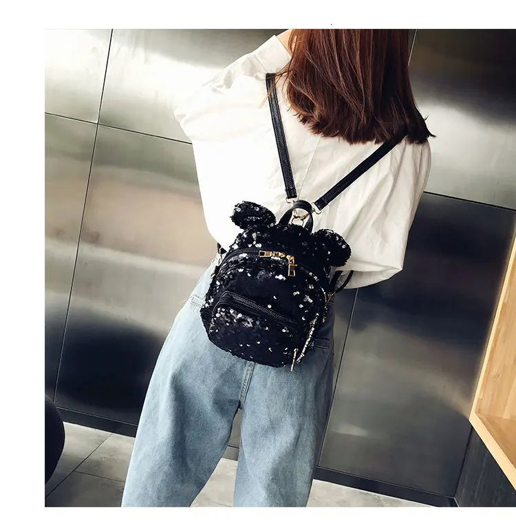 Блестящий женский рюкзак с блестками, милые уши, двойная сумка на плечо, мини-рюкзаки с блестками для девочек, дорожный рюкзак