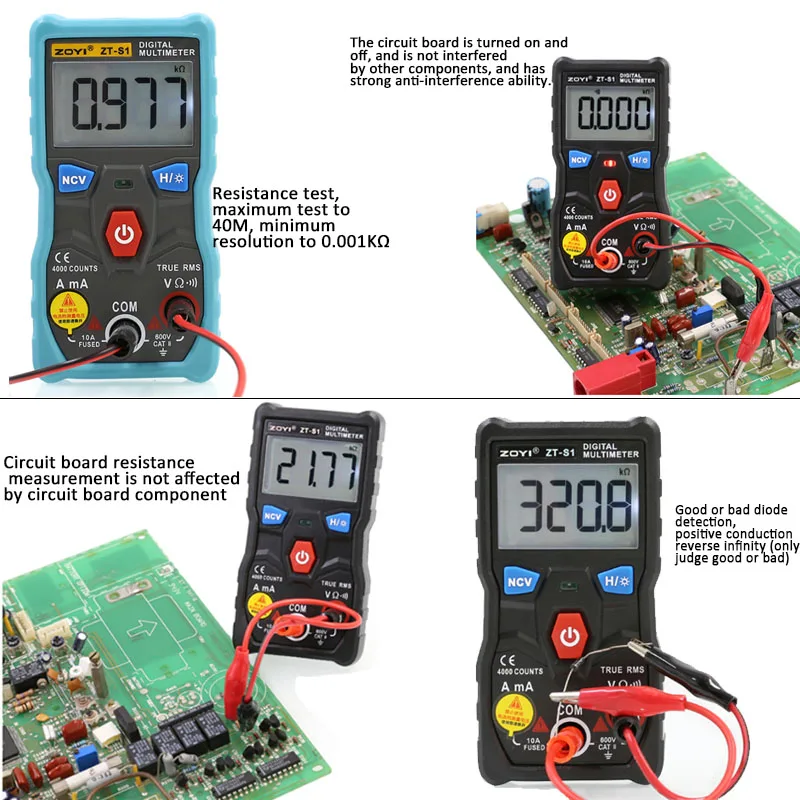 <Широкое использование: точно измеряет Постоянный/переменный ток, напряжение, сопротивление, температуру, емкость, диод, нулевой/пожарный провод, частоту и так далее.