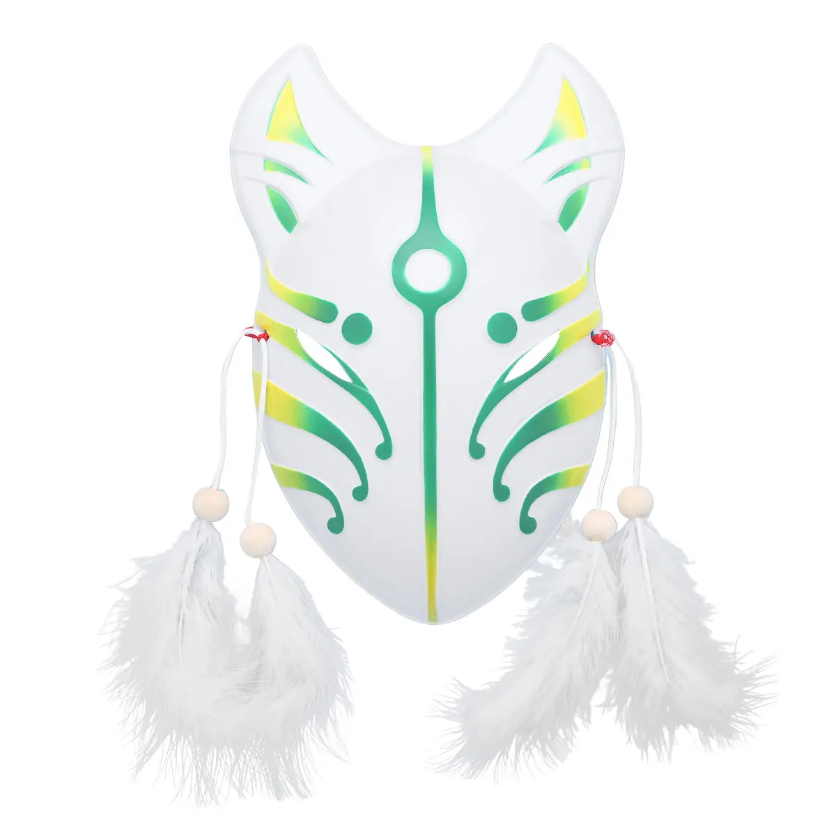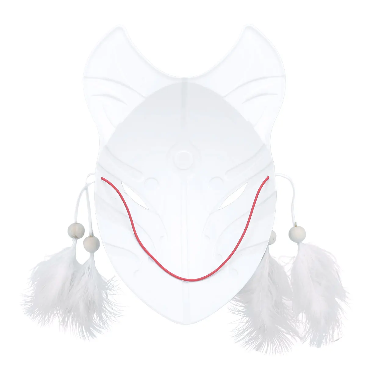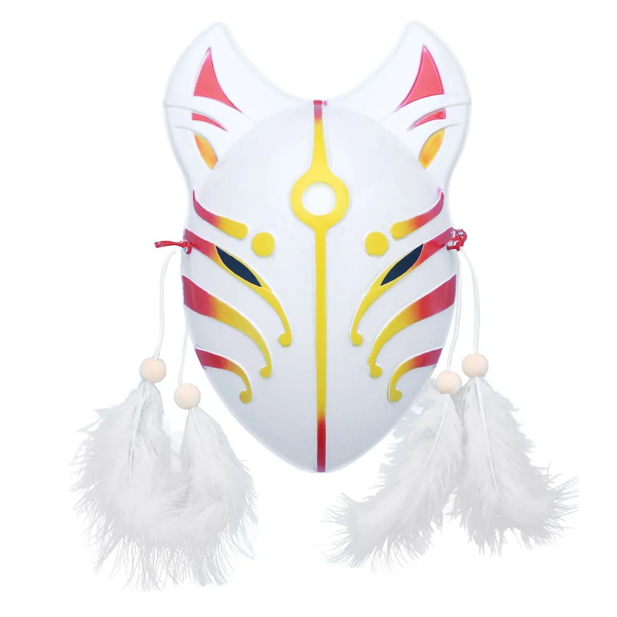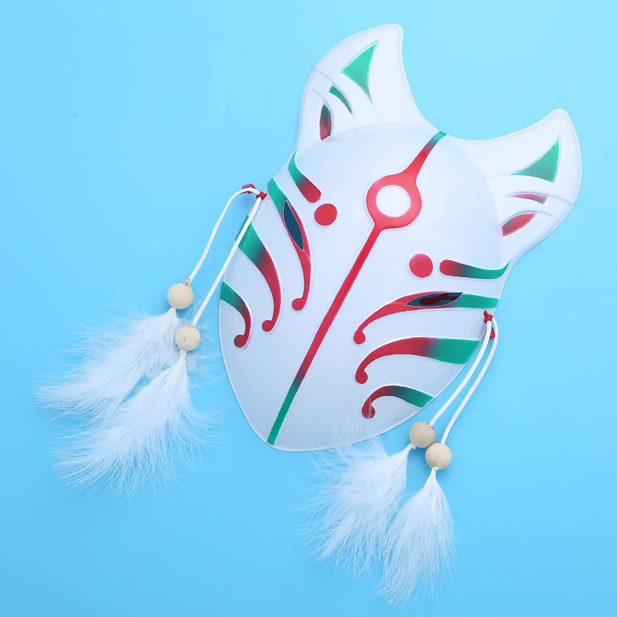 Маска лисицы в японском стиле с перьями и кисточками, уникальная и сделает вас в центре внимания вечерние.