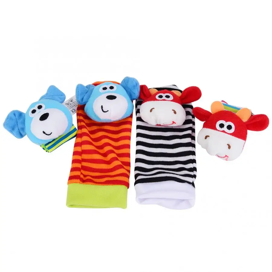 4 шт детские погремушки игрушки младенческой наручный ремень животные погремушки носки игрушки новые браслеты детские мягкие ручные ручки развивающие игрушки